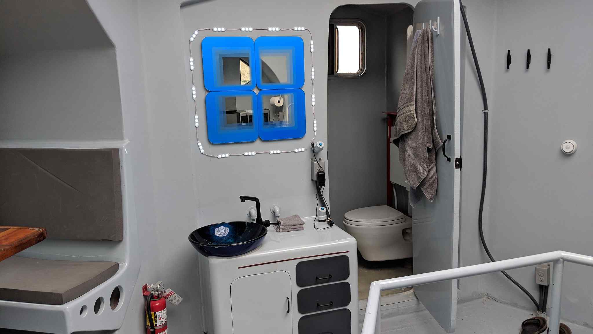 Inside of “the home lander,” there is an open area with external units for a bath, galley, breakfast nook and an area for storage. /VCG Photo