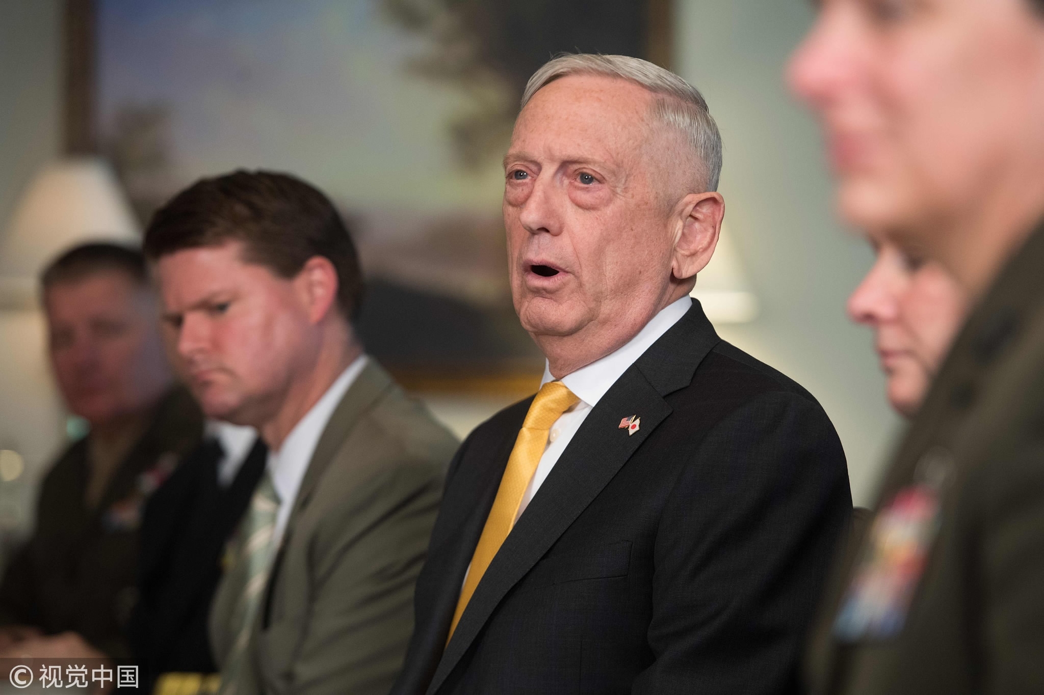 US Secretary of Defense Jim Mattis speaks during a meeting with Japanese Defense Minister Itsunori Onodera at the Pentagon in Washington, DC on April 20, 2018. /VCG Photo