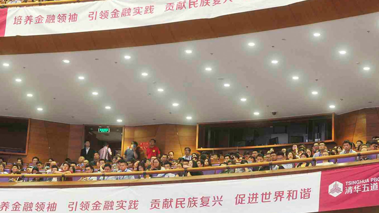 Participants at the Tsinghua PBCSF Global Financial Forum held in Beijing, May 19, 2018. /CGTN screenshot