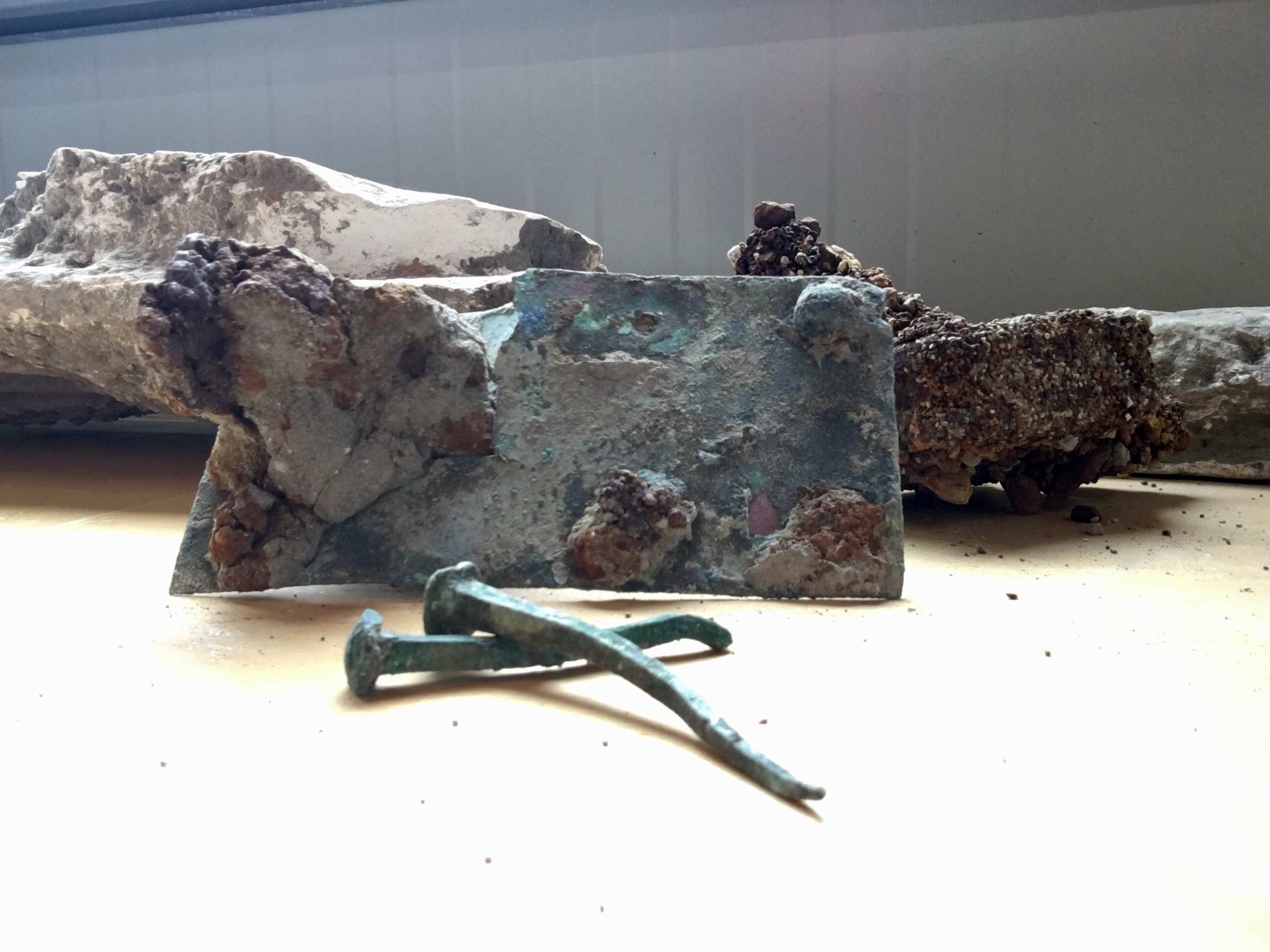 “These, for example, are two door locks. One is bronze and iron, the other is only iron. The interesting part is that the restoration will probably tell us that these two sections are made of iron, in particular, you can see on this one, is probably what is left of their keys. They were still inside the lock at the moment of the eruption.”