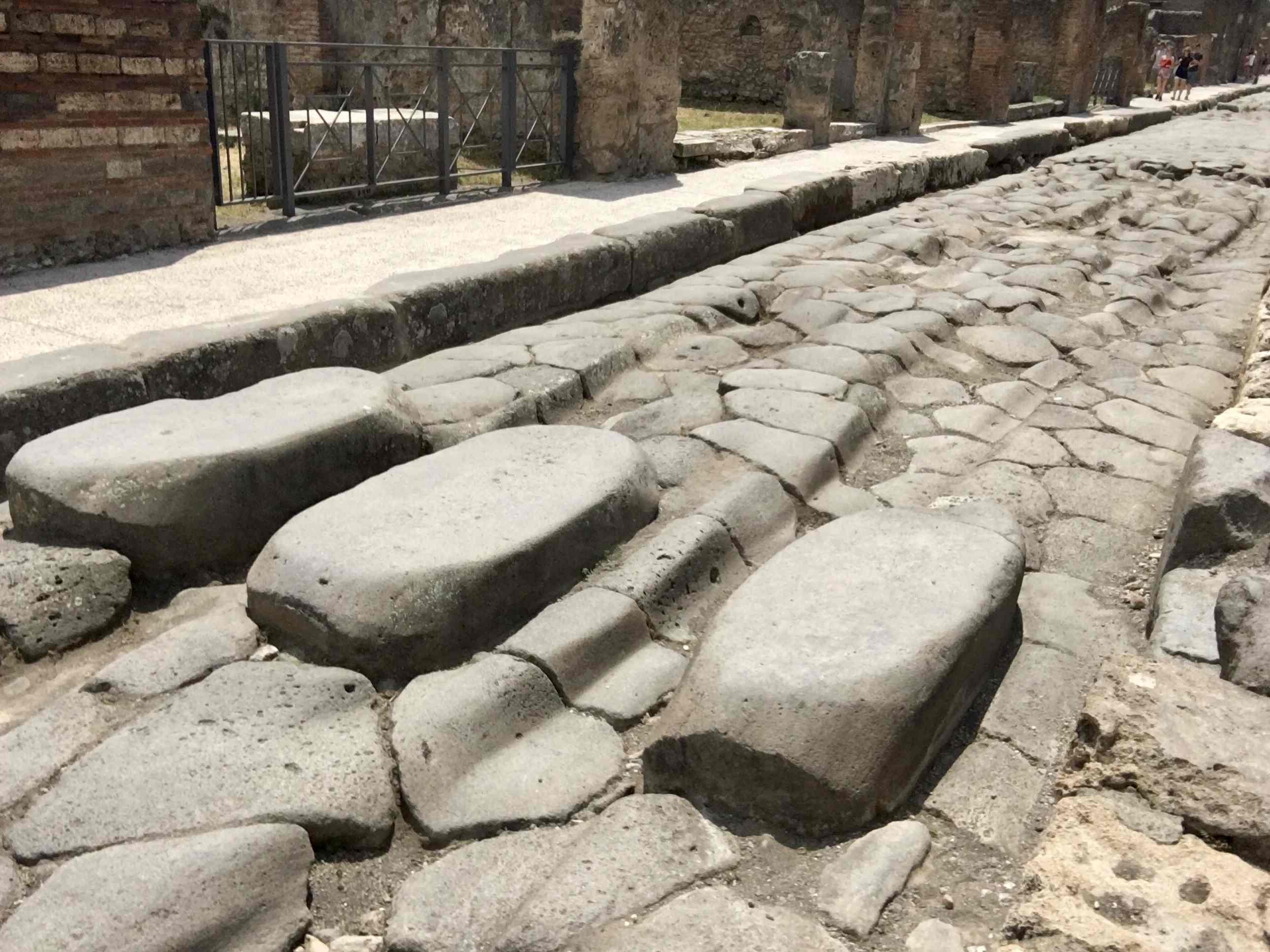 Wide rocks are placed across roads in Pompeii so people could pass during heavy rainfalls. They are also spaced in a way so the horse and carriages could still pass. /CGTN Photo