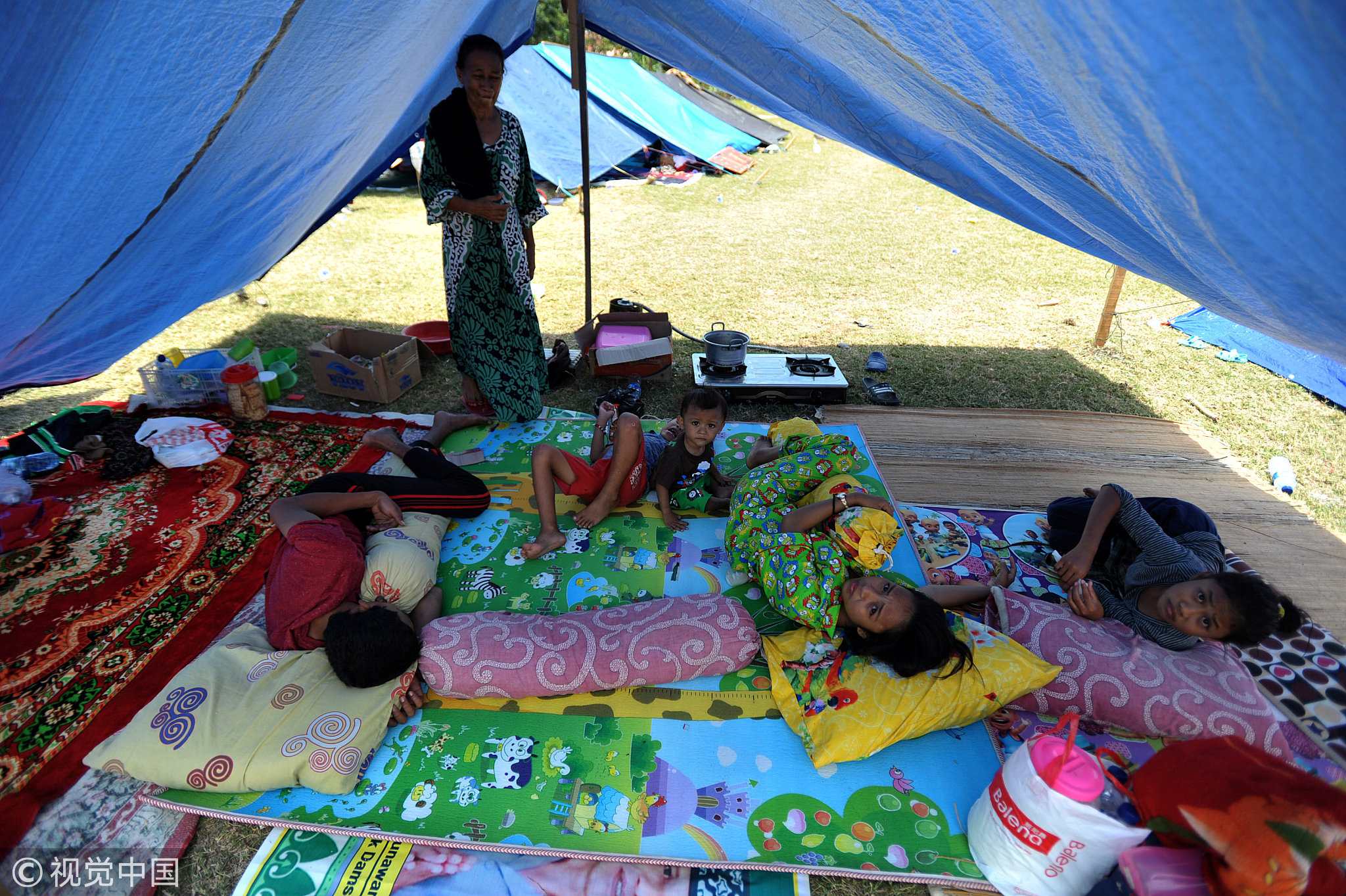 Thousands of people are sleeping in tents or in rough shelters made from debris after the earthquake. /VCG Photo