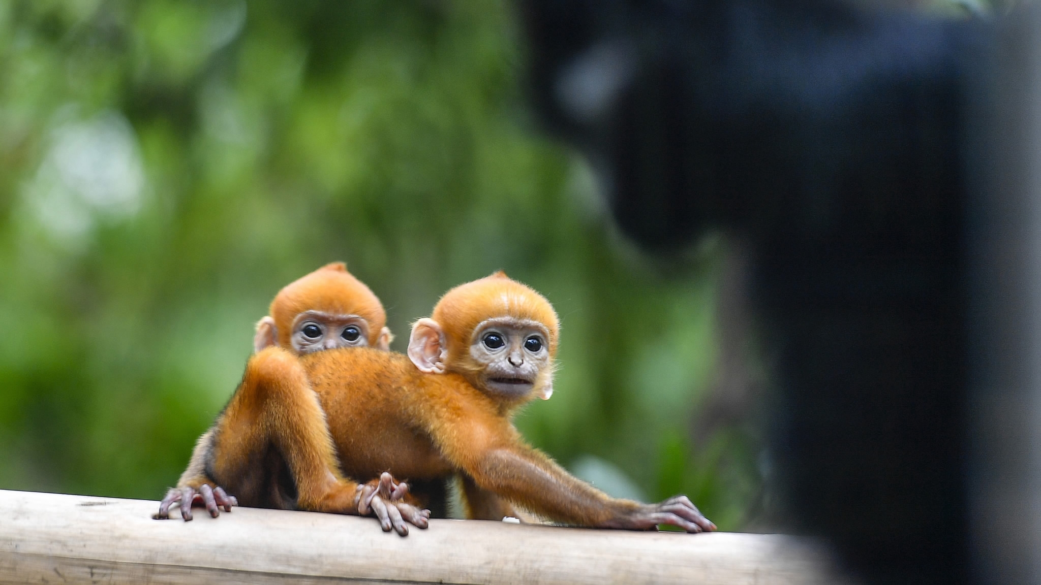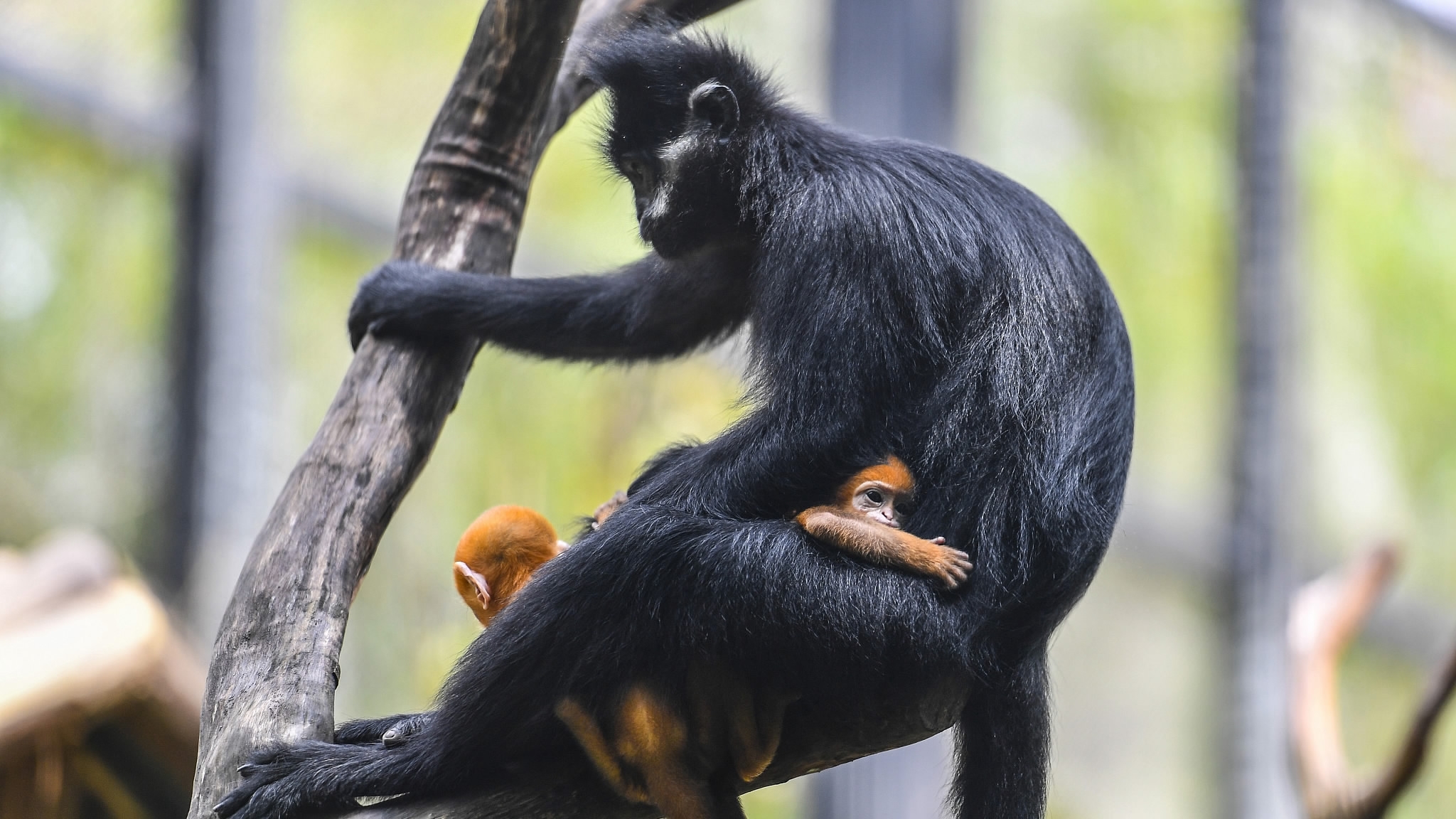 It’s rare for primates to deliver two babies to the world within 24 hours, not to mention a pigeon pair. The langurs were born on April 19 and 20. /Chinanews Photo