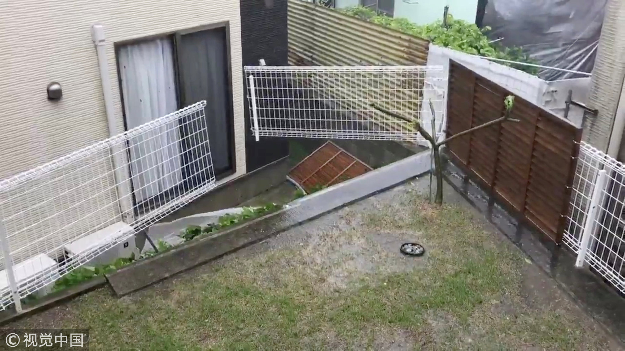 A residential fence breaks open due to heavy rain and wind caused by Typhoon Trami in Itoman city, Okinawa prefecture, September 29, 2018. /VCG Photo