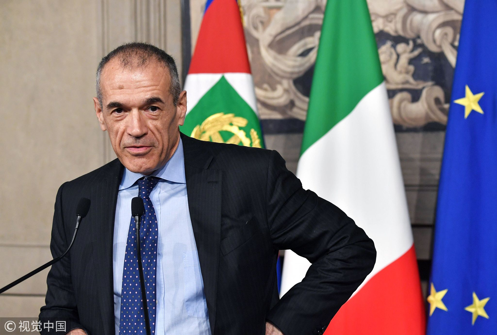 Carlo Cottarelli addresses a press conference after Italian president gave him mandate to form a government, at the Qurinale presidential palace, in Rome, May 28, 2018./ VCG Photo