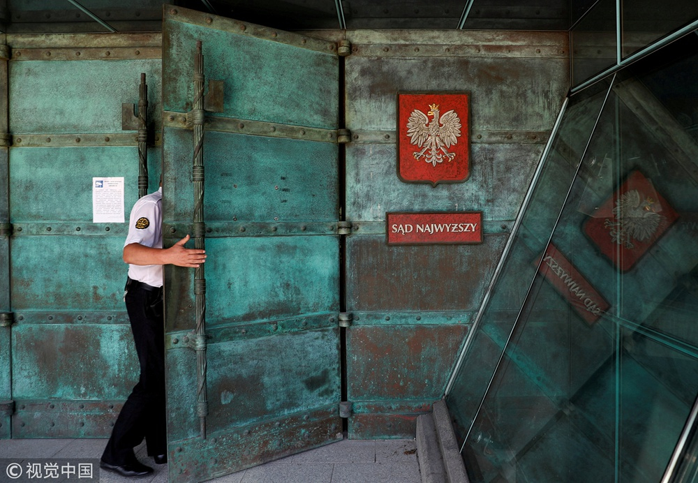 A guard enters the Supreme Court in Warsaw, Poland, August 13, 2018. /VCG Photo