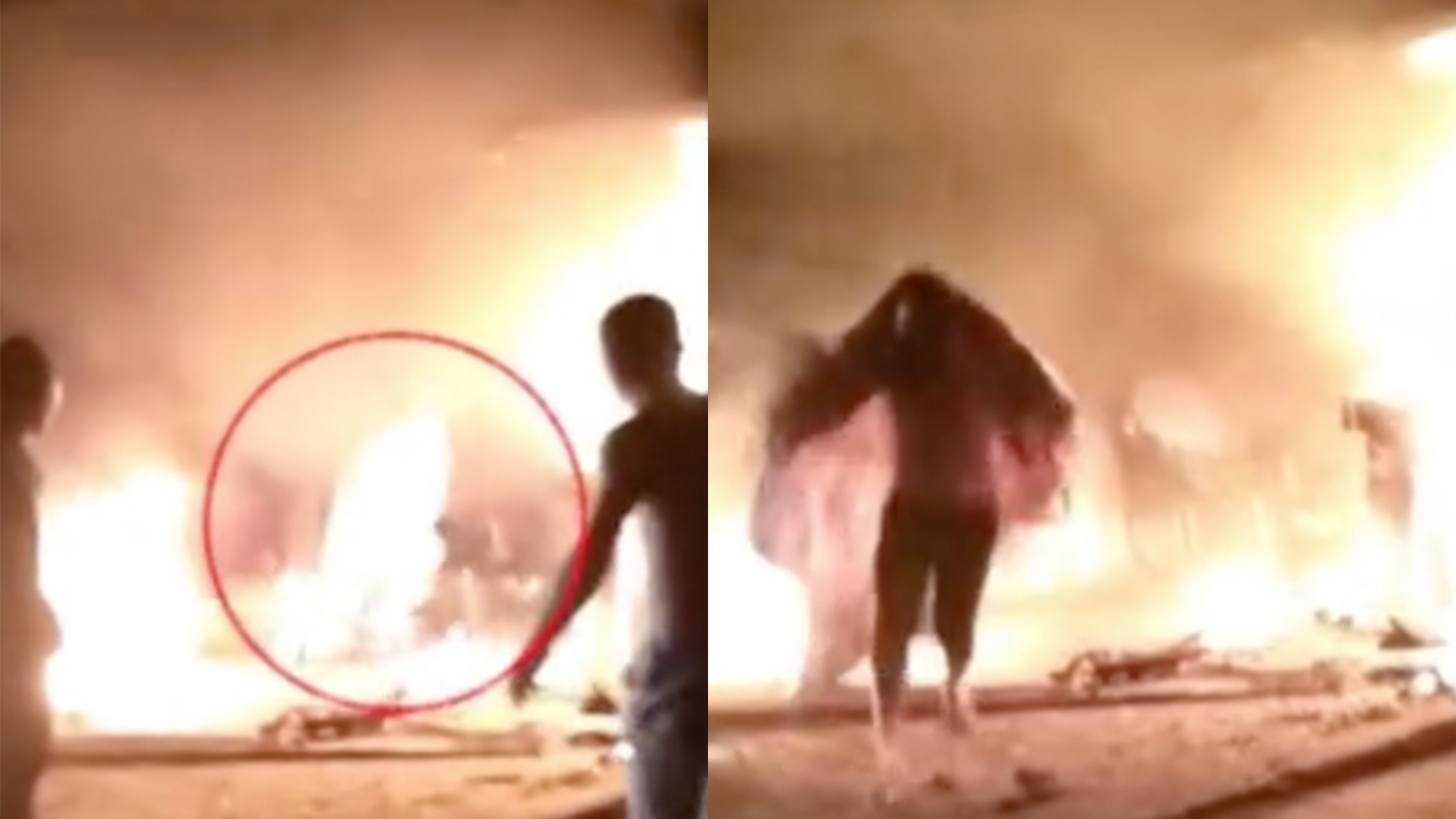 A man wrapped himself in a quilt and rushed into a fiery parking garage at a residential community in Suining City, Sichuan Province, on September 8. He was searching for trapped residents, but the smoke and fire limited his vision. An elderly man was later found dead by firefighters. The cause of the fire is under investigation.