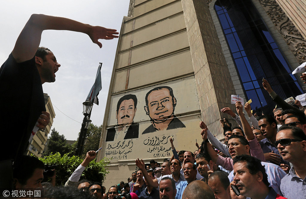 Journalists protest against restriction on the press and to demand the release of detained journalists, in front of the Press Syndicate in Cairo, Egypt, May 4, 2016. /VCG Photo