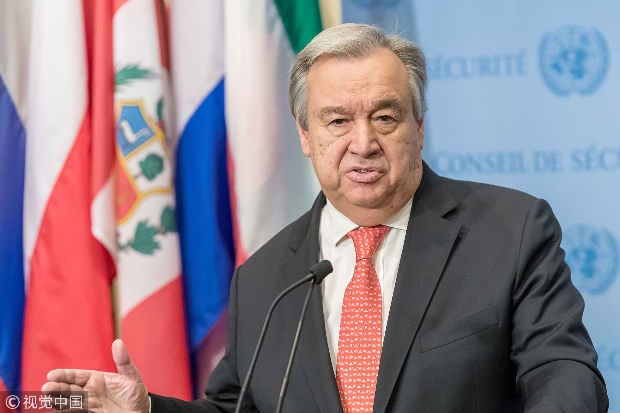 UN Secretary-General Antonio Guterres speaks with the press at the UN Headquarters in New York, US, February 2, 2018. /VCG Photo