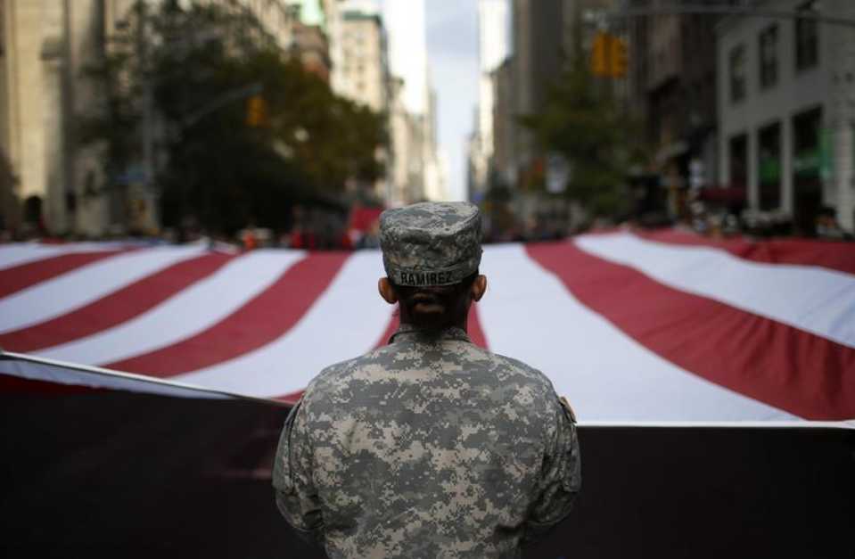 Nov. 11, 2014: US Army soldiers carry a US flag in the Veterans Day parade on 5th Avenue in New York. /Reuters Photo