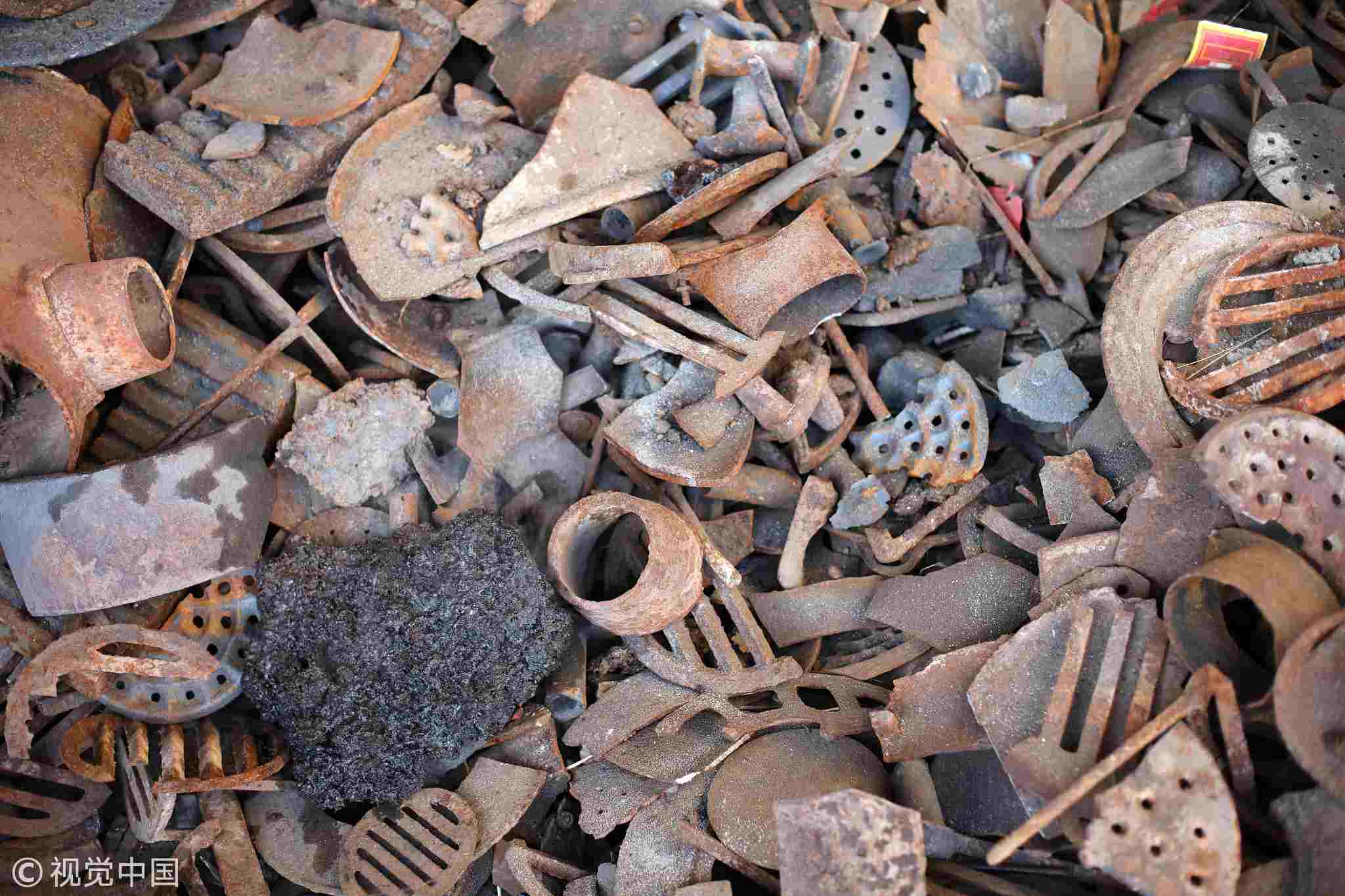 Those collected waste irons will be melt for "Dashuhua" show. /VCG Photo