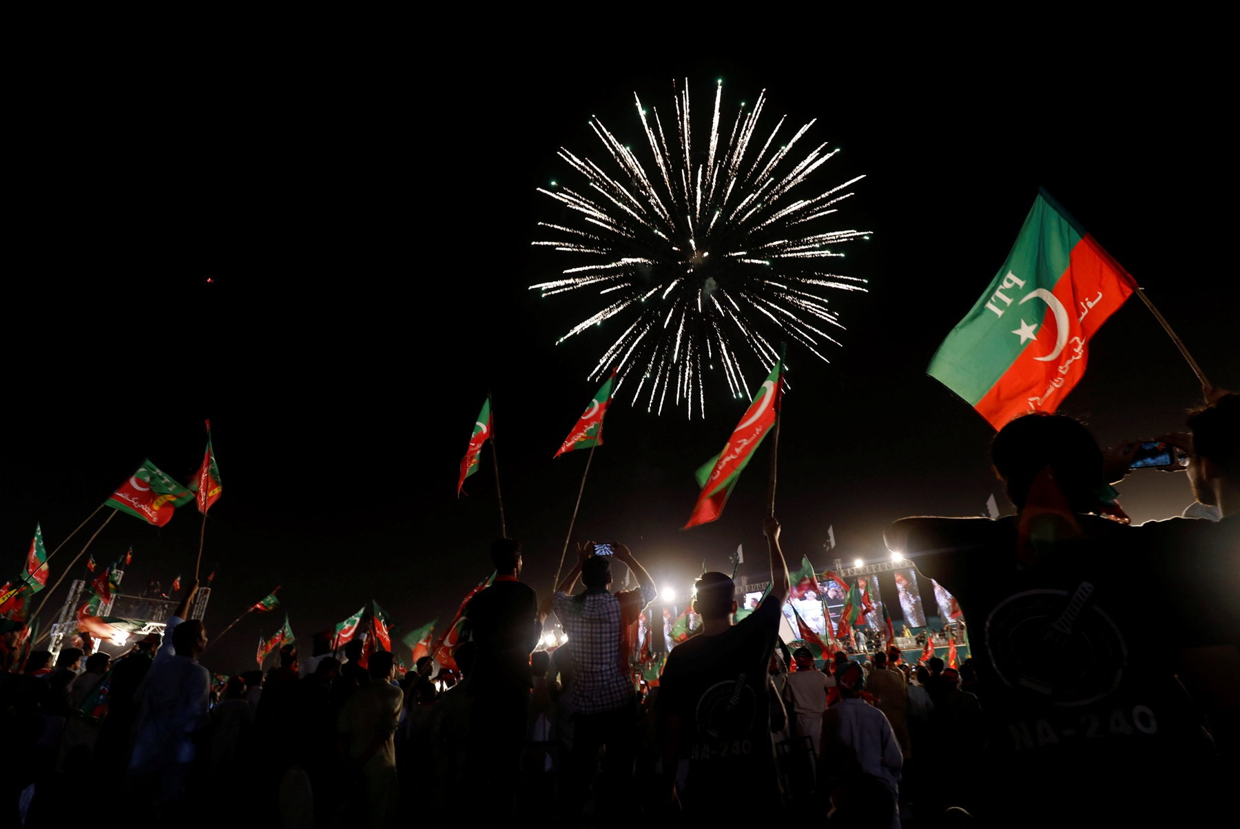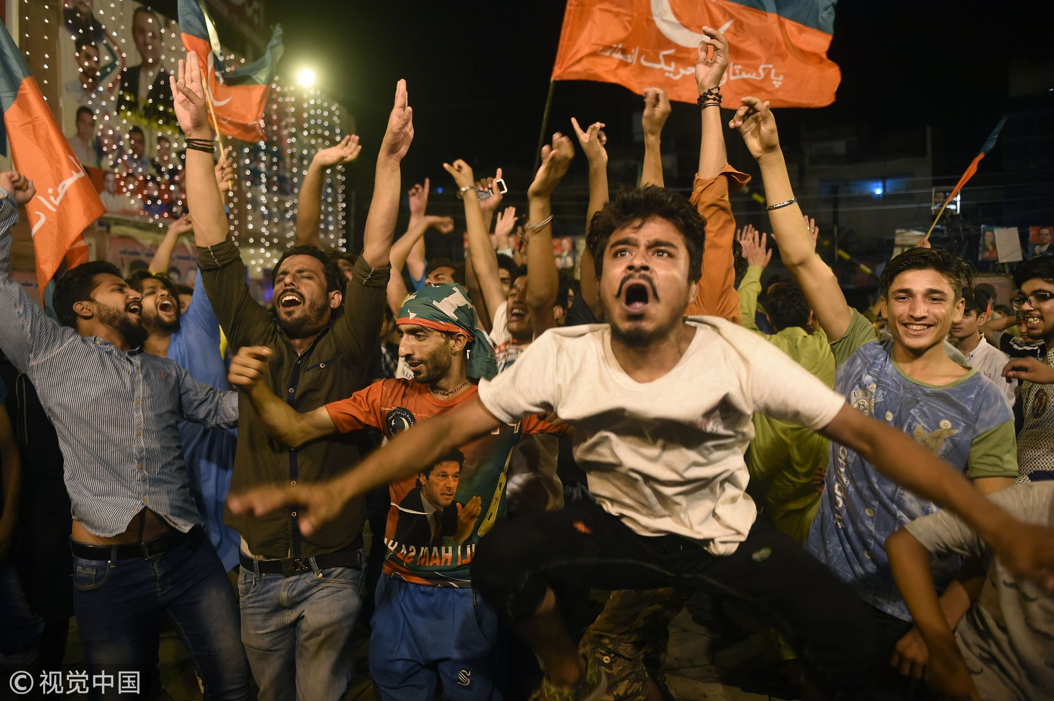 Supporters of Pakistan's Imran Khan, head of the Pakistan Tehreek-e-Insaf (Movement for Justice) party, celebrate during the general election in Lahore on July 25, 2018. /VCG Photo