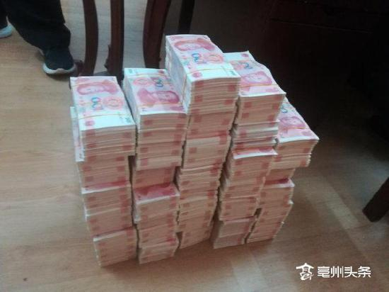 Police found more than 240,000 yuan in cash stored in the bedside cabinet. /Photo via Bozhou Evening News