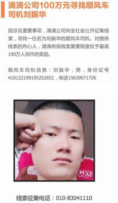 Didi was under fire for its security loopholes after the case triggered wide criticism from the public. As the police investigation proceeded, the company made a public apology to Li and her family and announced their decision to offer up to a million yuan for any clues leading to the suspect driver Liu Zhenhua.