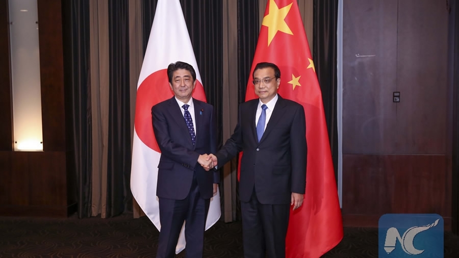 Nov. 1, 2015: Chinese Premier Li Keqiang (R) met with Japanese Prime Minister Shinzo Abe in Seoul, S. Korea. /Xinhua Photo