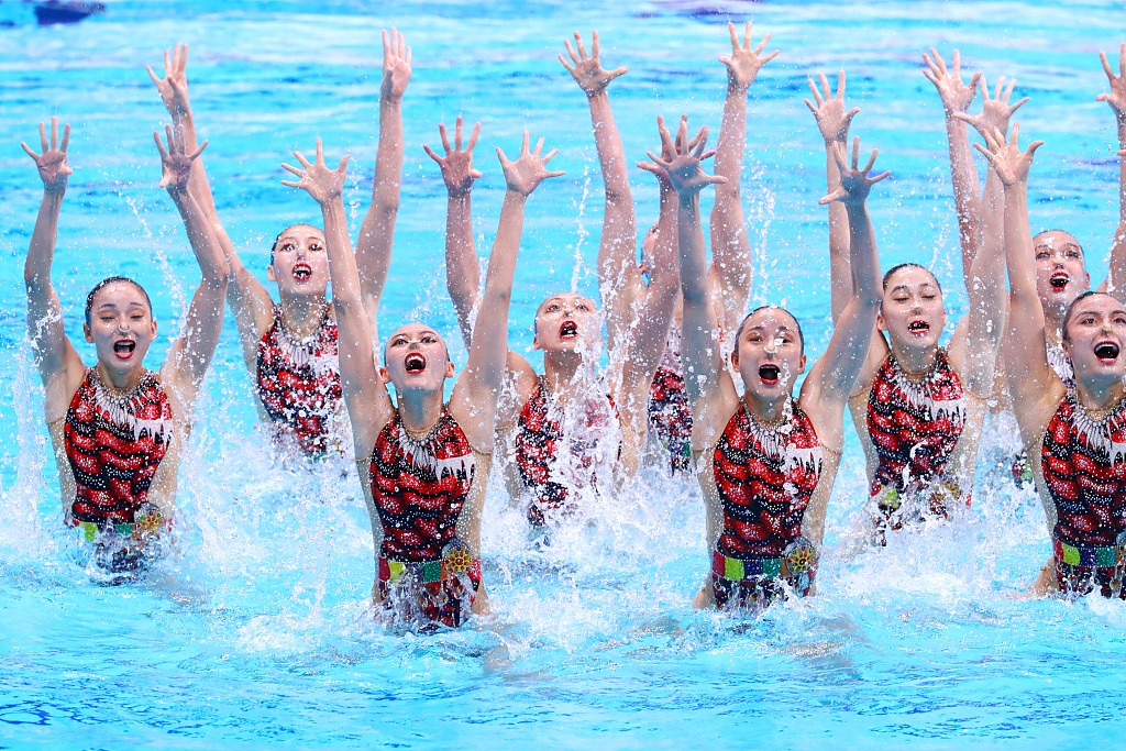 China's team competes at the 4th leg of the FINA Artistic Swimming World Series 2019 in Tokyo, Japan.