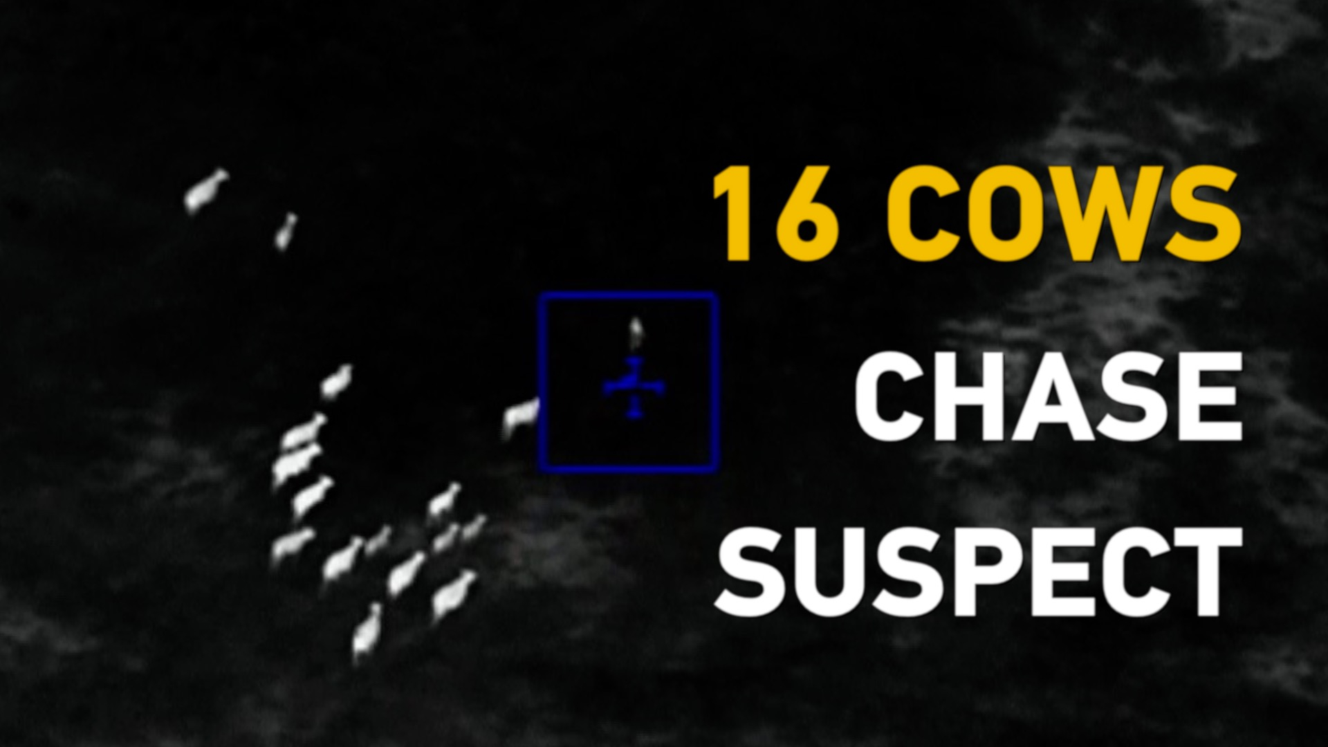 A herd of 16 cows helped police officers in Florida corral a fleeing suspect who bailed out of a car and ran through a pasture.