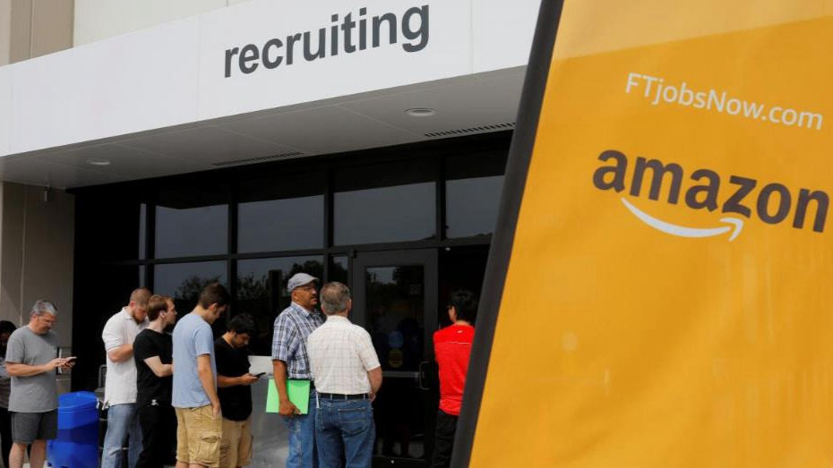 (Cover: Job seekers line up to apply during "Amazon Jobs Day", a job fair at the Amazon.com Fulfillment Center in Fall River, Massachusetts, US, August 2, 2017. /Reuters Photo)