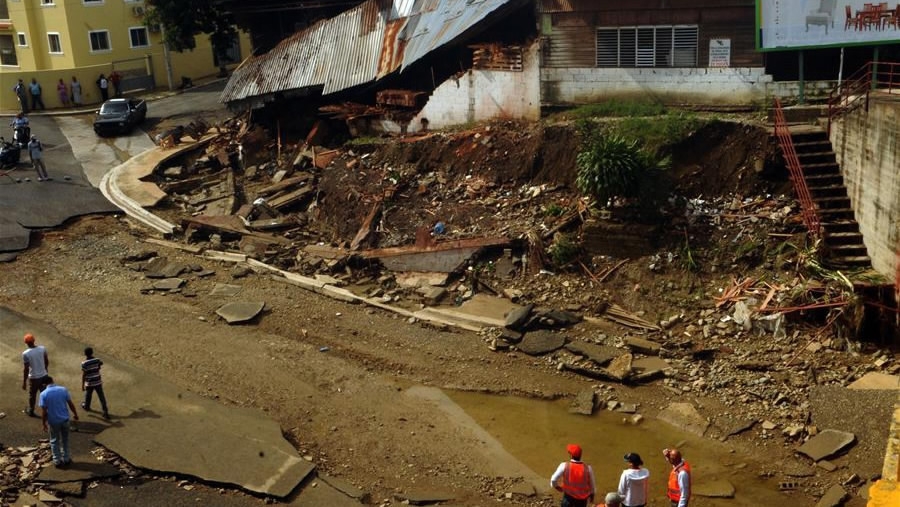 Images like this damaged road in the Dominican Republic spread alarm among international tourists. /Xinhua Photo