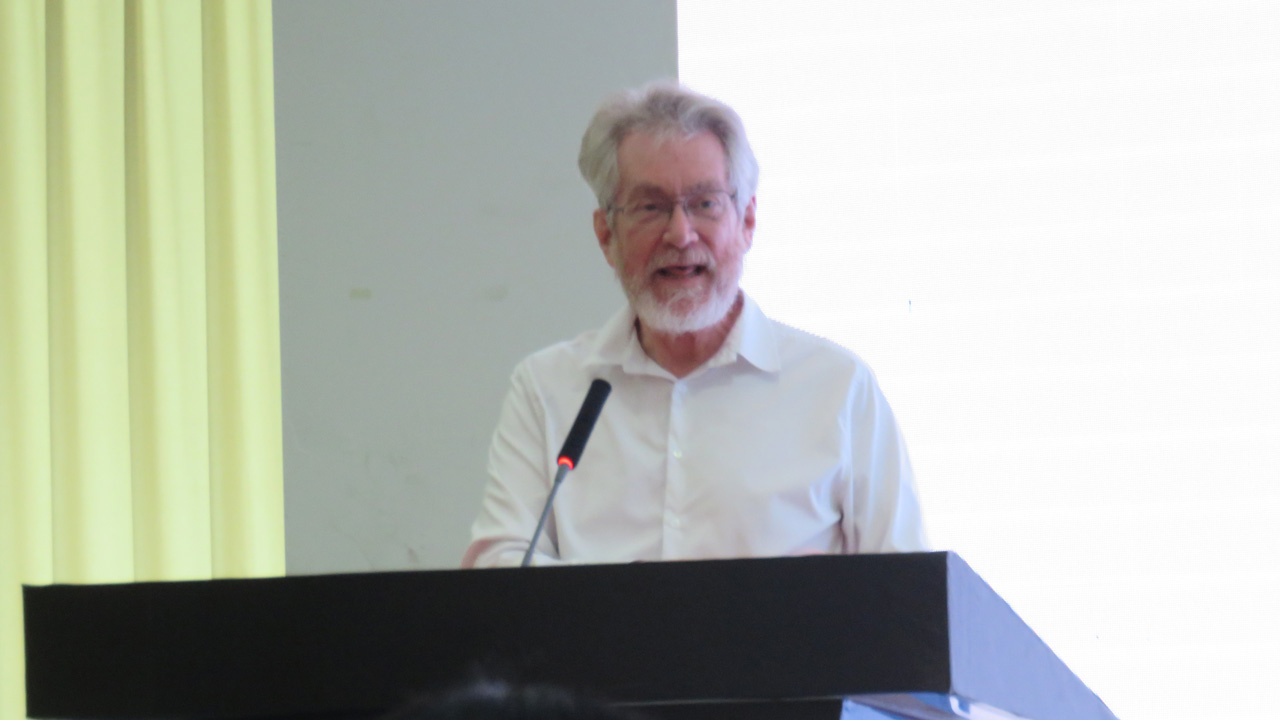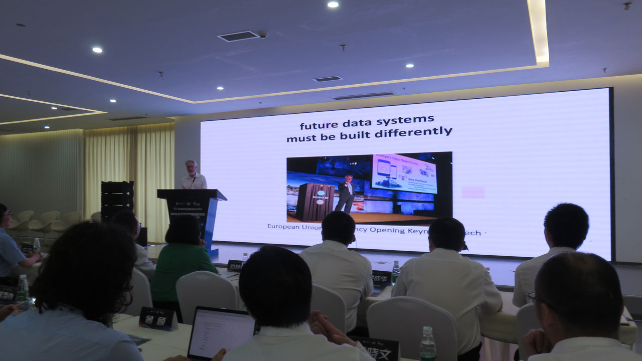 Alex Pentland talks about data system for smart city at a seminar held in Xihua University, western China's Chengdu City, on May 20. /CGTN Photo