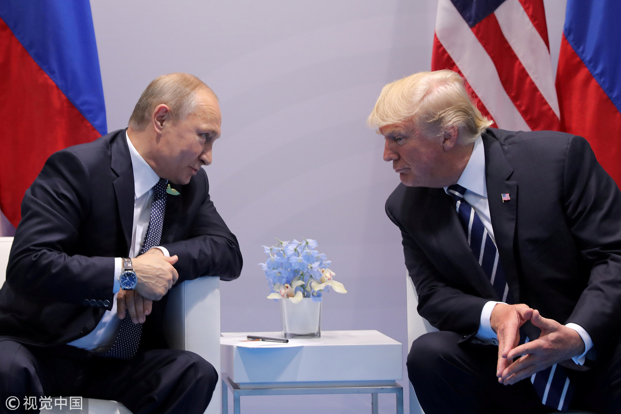Putin talks to Trump during their bilateral meeting at the G20 summit in Hamburg, Germany July 7, 2017. /VCG Photo