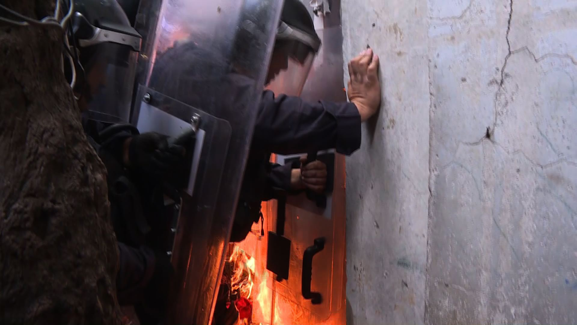 Residents responded by throwing stones, swinging large sticks and rushing at riot police clustered behind protective shields, in clashes that lasted several hours. Children and police were also among the wounded.