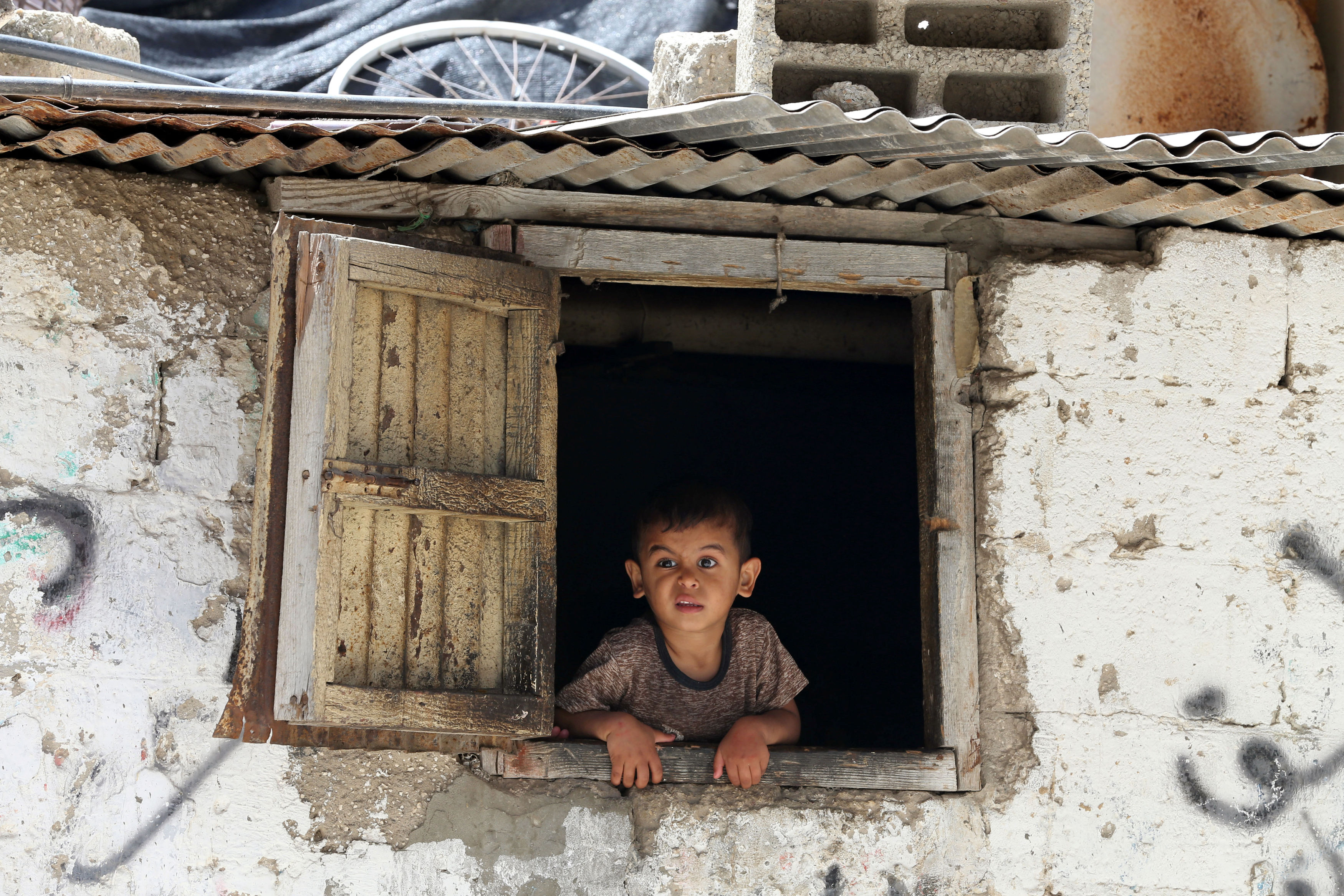 A Palestinian boy looks out of his family house in Khan Younis refugee camp in the southern Gaza Strip, May 21, 2019. /Reuters Photo