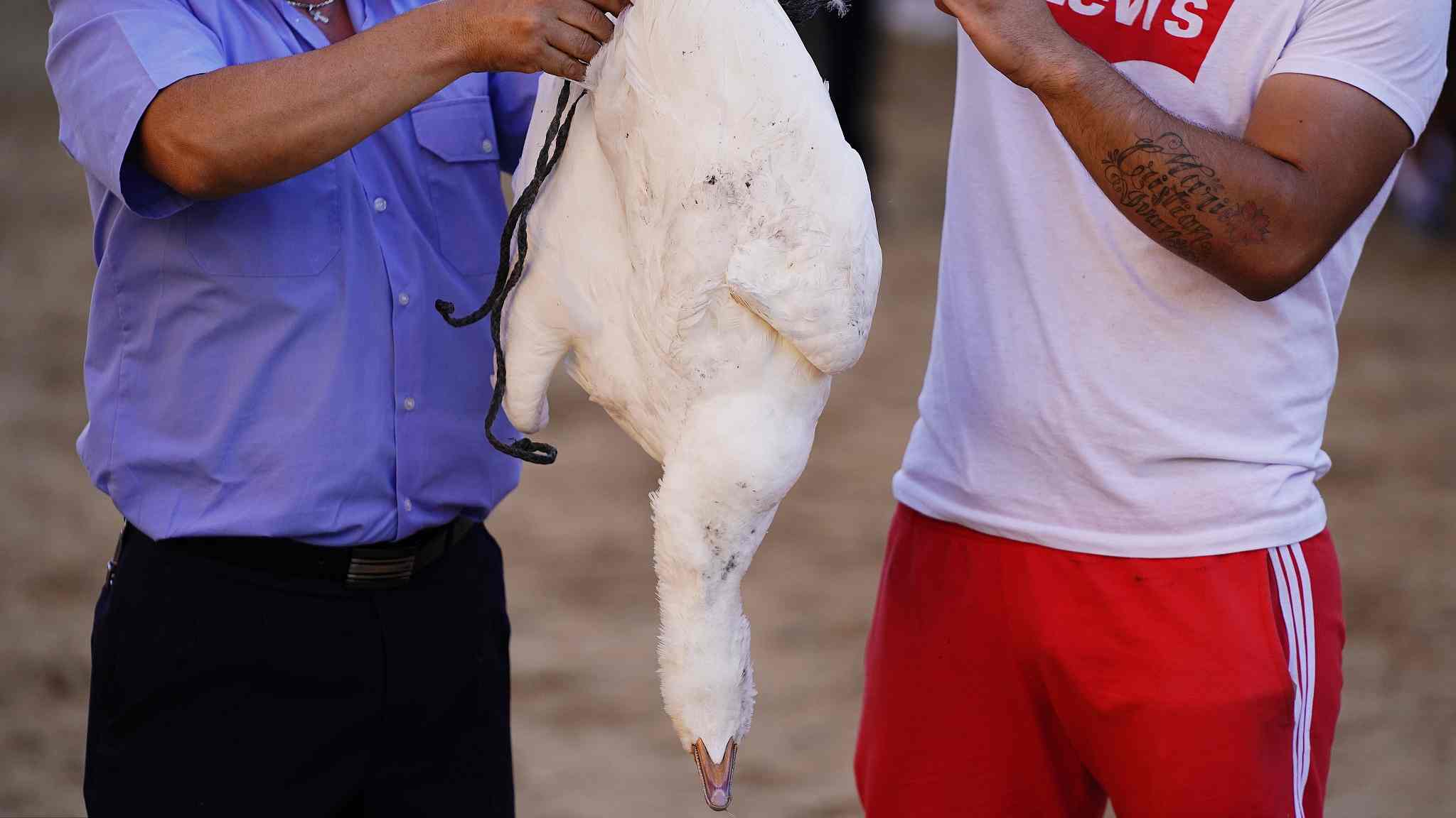 During the festival, both male and female riders must perform a variety of races on horseback called "running the goose" where they must behead dead geese hanging and tied up in the main square. /VCG Photo