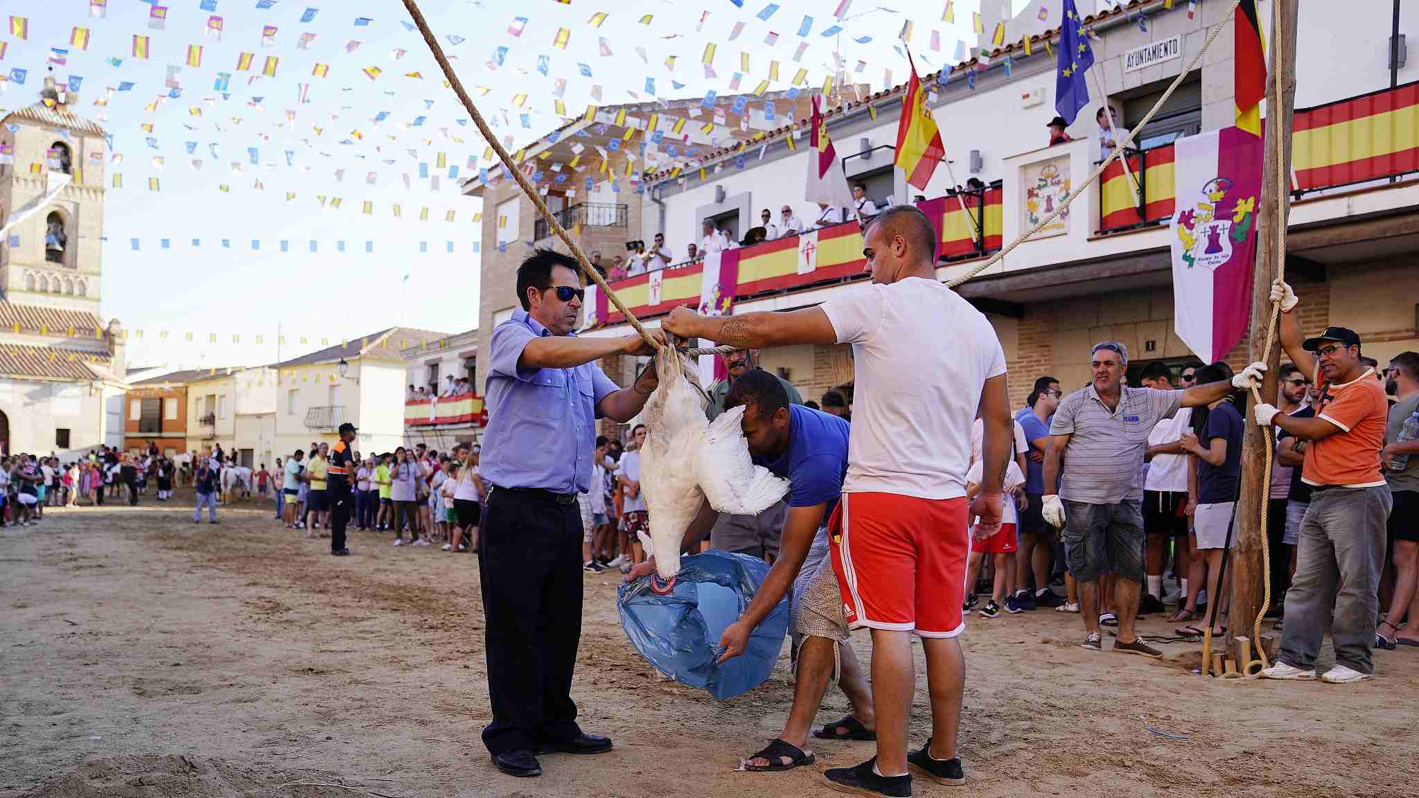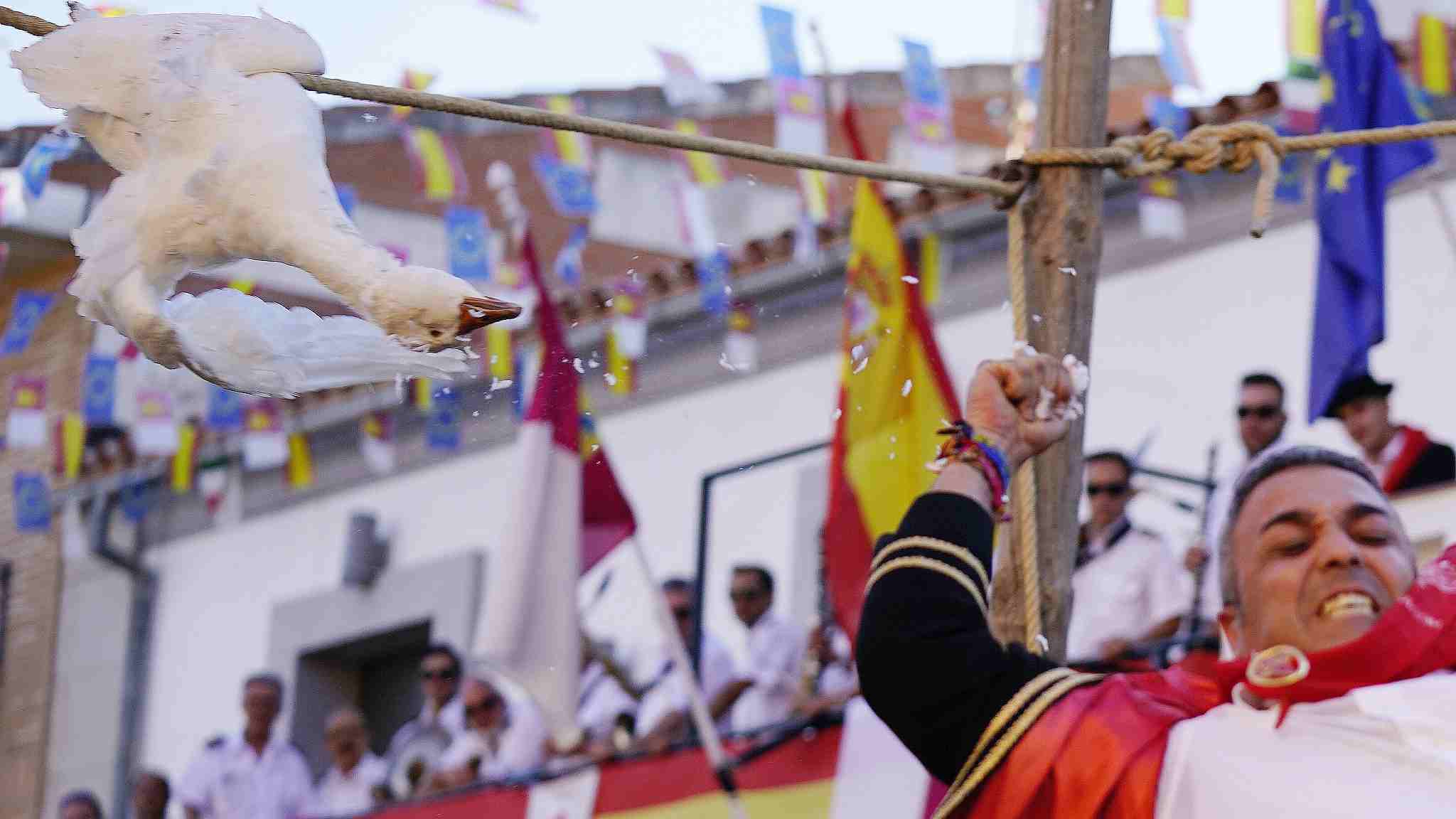The St. James Festival was held in the Spanish village of El Carpio de Tajo in the province of Toledo, as crowds turned out to applaud competitors. Horse riders have been taking part in the ancient festival as they compete with each other to decapitate a dead goose suspended on a wire. /VCG Photo
