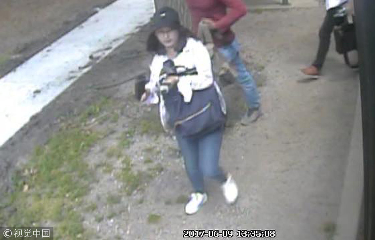 Surveillance footage shows Zhang Yingying was last seen at a bus stop on Goodwin Avenue and Clark Street on June 9, 2017. / VCG Photo