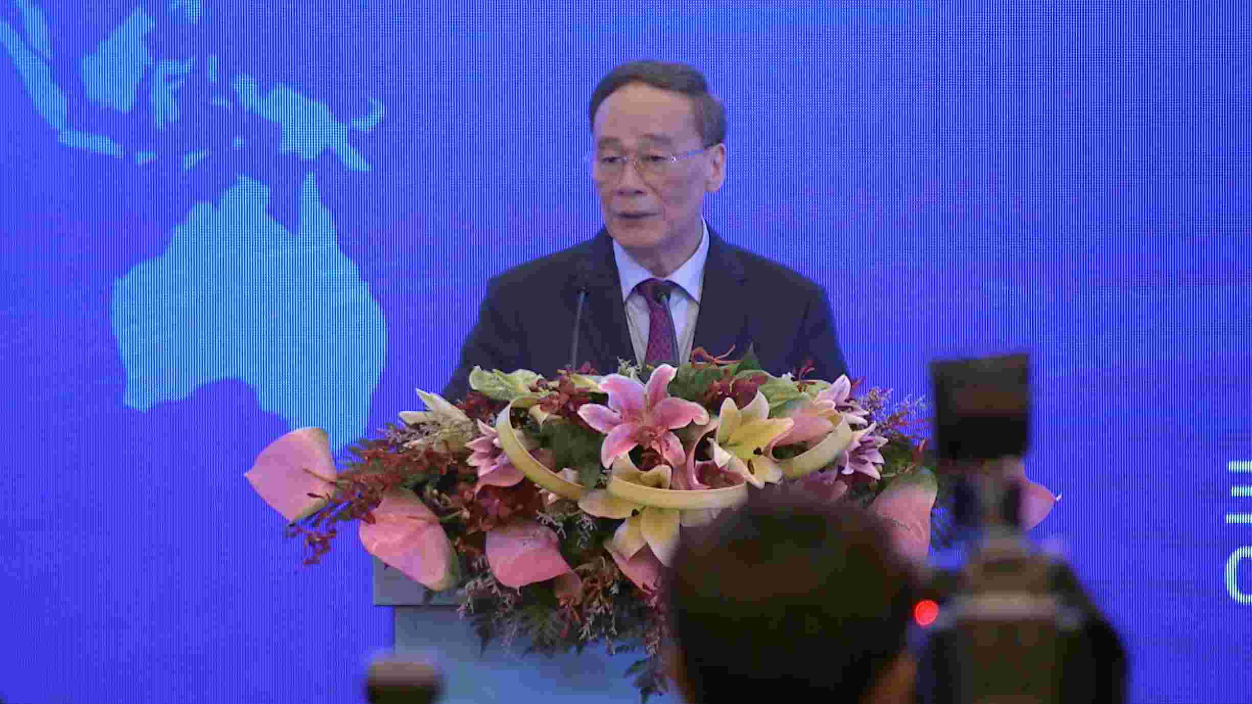 Chinese vice president Wang Qishan delivers a keynote speech. /CGTN Photo
