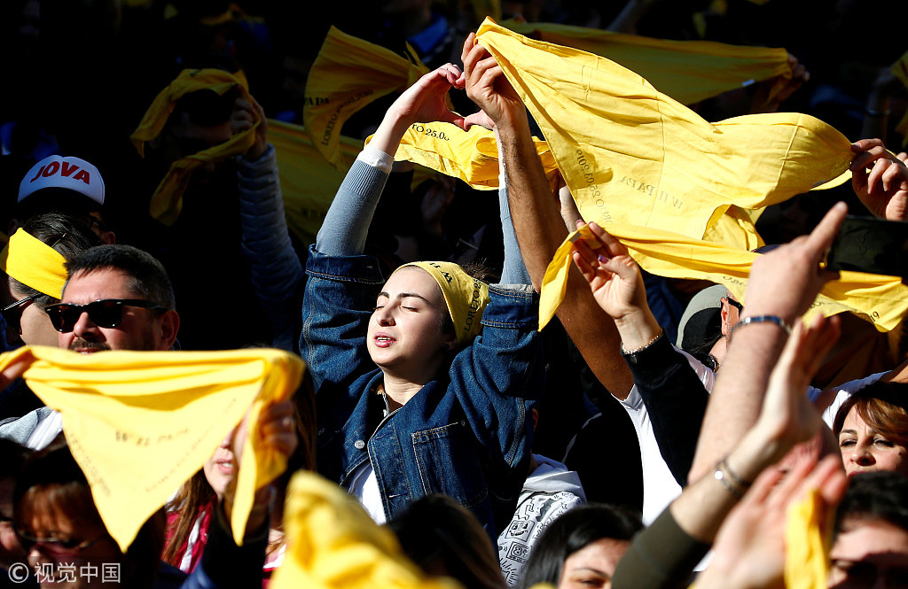 The faithful wait for Pope Francis on the feast of the Annunciation