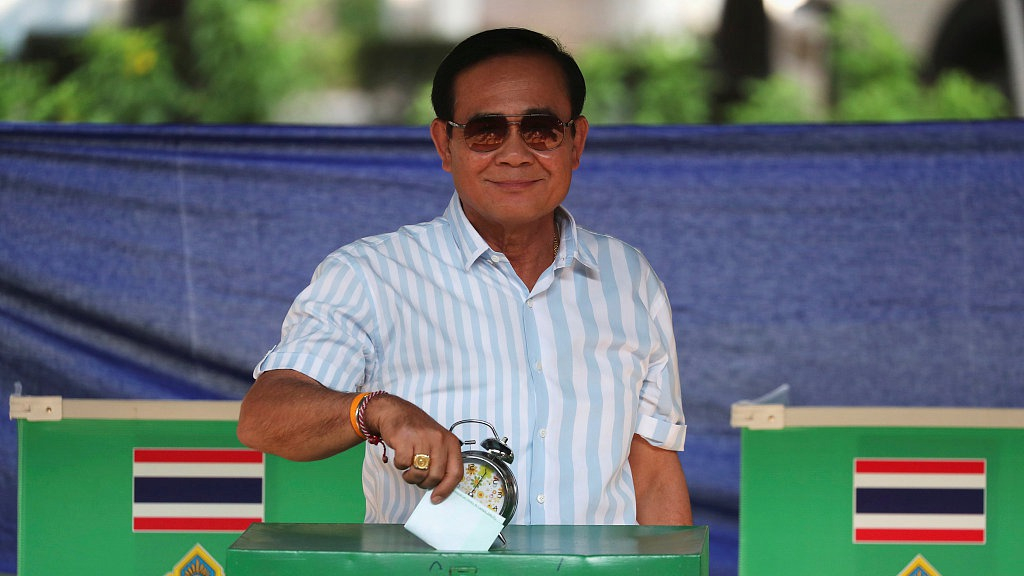 Thailand's Prime Minister Prayuth Chan-ocha casts his ballot to vote in the general election at a polling station in Bangkok, Thailand, March 24, 2019. /VCG Photo