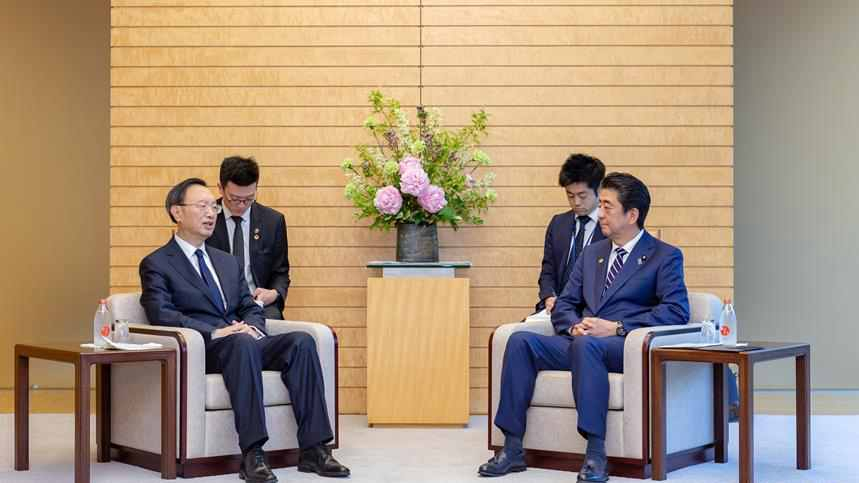 Japanese Prime Minister Shinzo Abe met with Yang Jiechi, a member of the Political Bureau of the Communist Party of China (CPC) Central Committee and director of the Office of the Foreign Affairs Commission of the CPC Central Committee, in Tokyo on Friday.