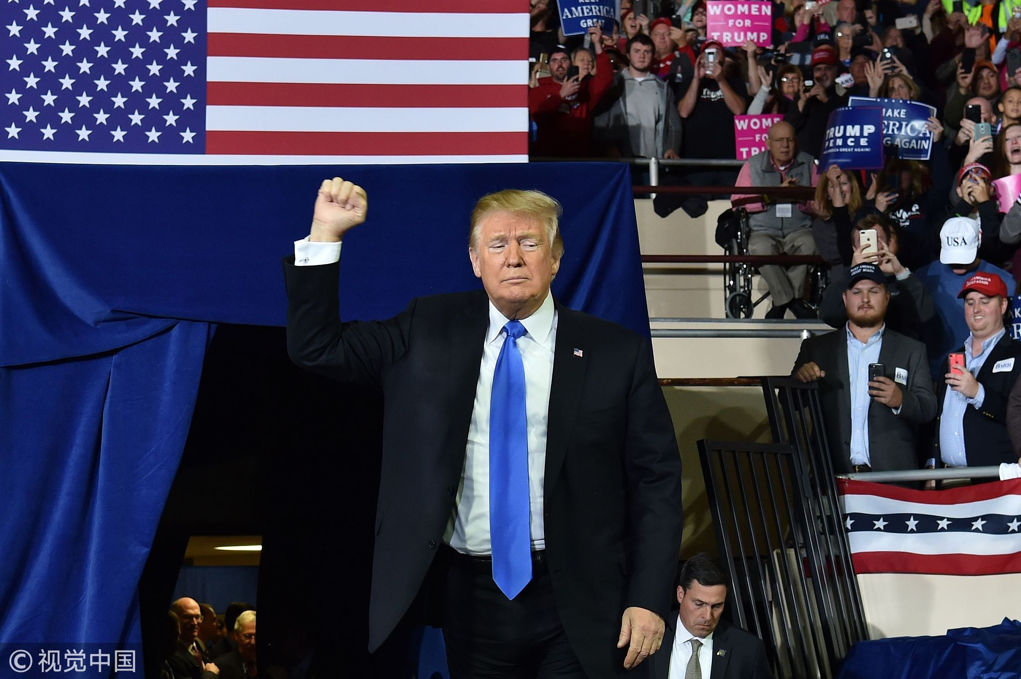 US President Donald Trump arrives at a "Make America Great Again" rally at the Eastern Kentucky University, in Richmond, Kentucky, October 13, 2018. /VCG Photo
