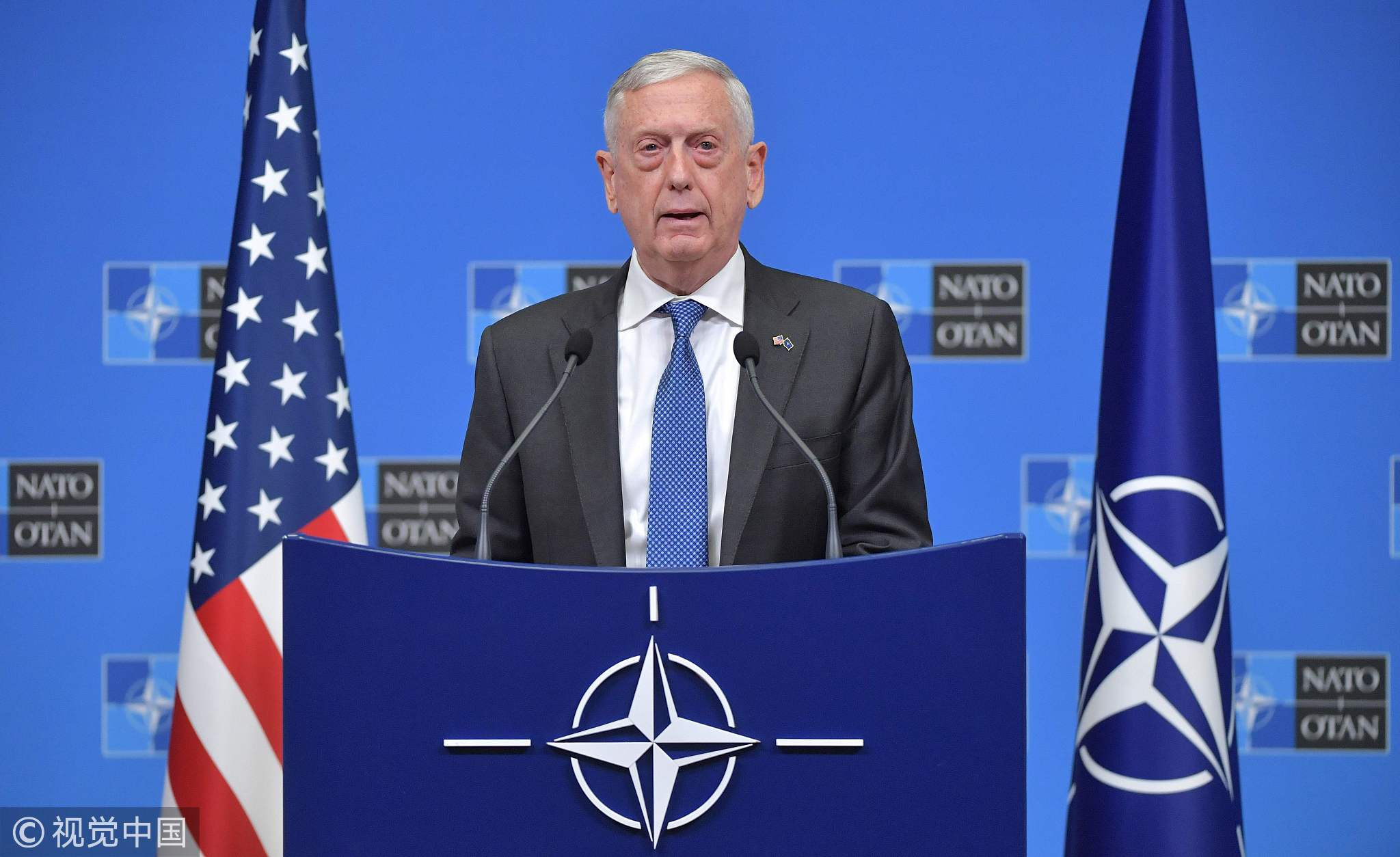 US Defence Secretary James Mattis addresses a press conference at the end of a NATO defense ministerial meeting at NATO headquarters in Brussels, October 4, 2018. /VCG Photo
