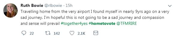 Postal votes from abroad are not allowed in this referendum, much like during Ireland's historic 2015 push to legalize gay marriage. So Irish voters have been traveling home to cast their ballot – from the UK, Europe, and even as far as Argentina, Vietnam and Australia – using the hashtag #HomeToVote to share their stories.