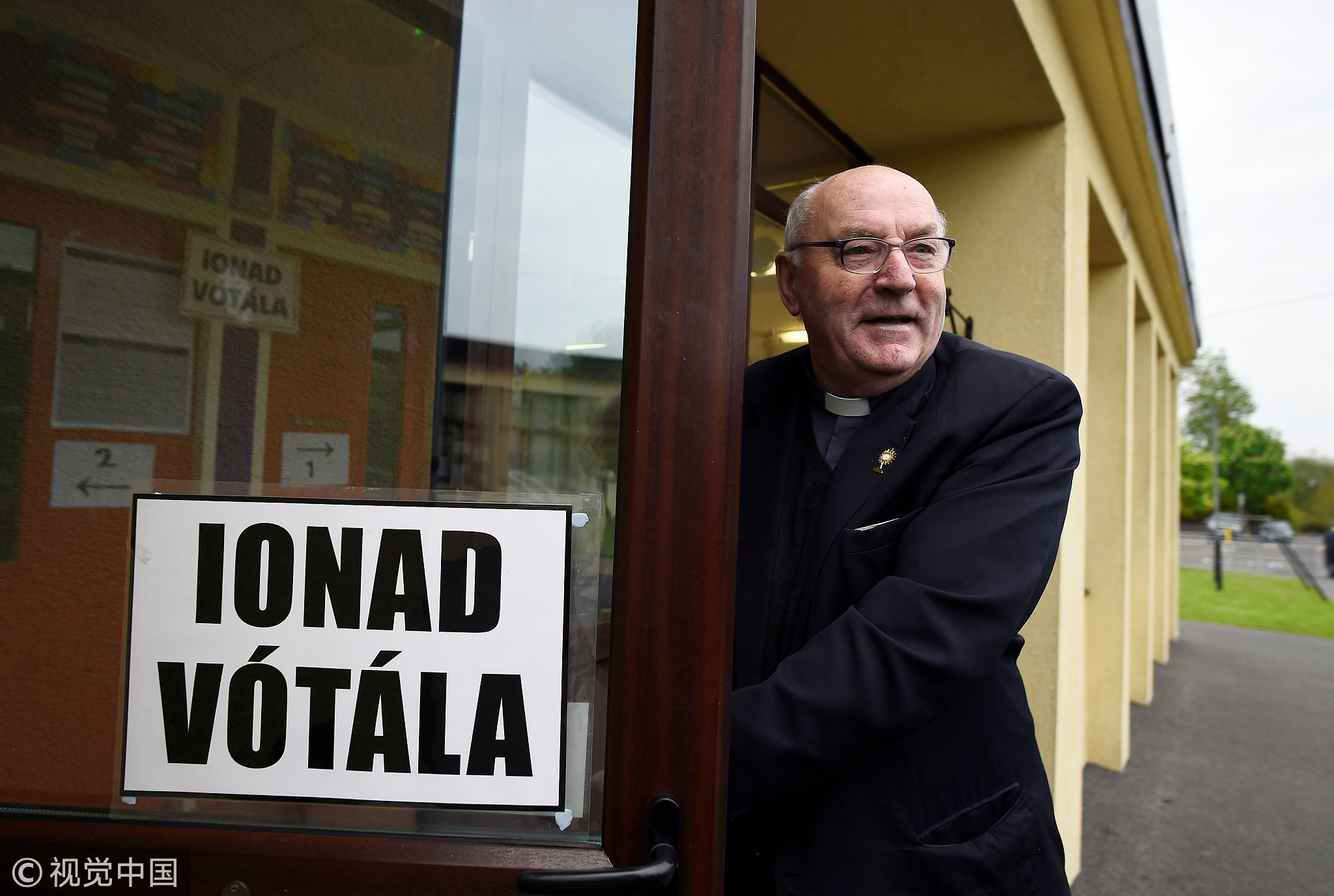 Father Thomas Harrington arrives to vote at Knock National School as Ireland holds a referendum on liberalizing its law on abortion, in Knock, Ireland, May 25, 2018. /VCG Photo