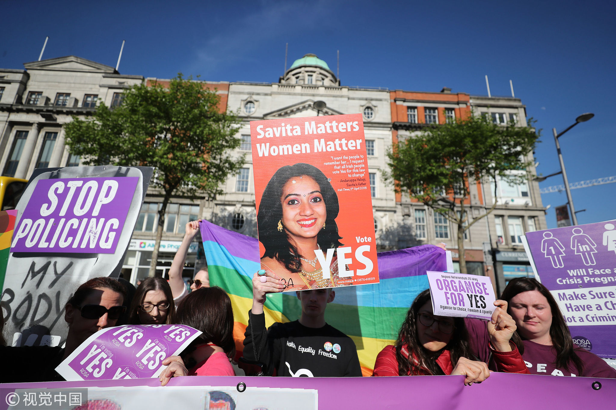 Volunteers from Reproductive rights against Oppression, Sexism & Austerity (ROSA) call for a 'Yes' vote in Ireland's abortion referendum in Dublin, May 23, 2018. /VCG Photo