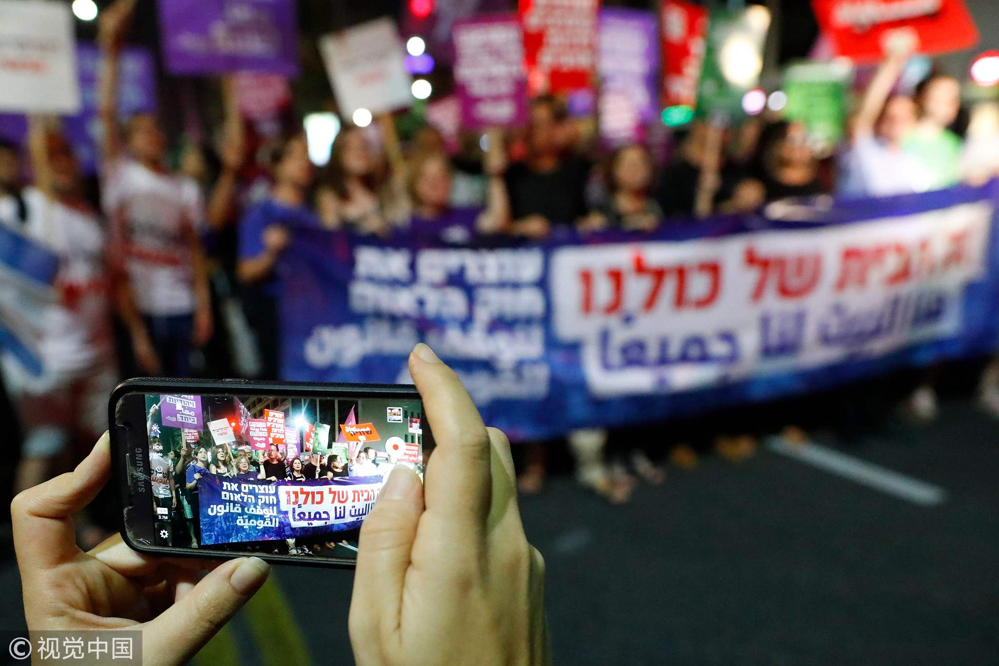 Demonstrators attend a rally to protest against the 'Jewish Nation-State Bill' in the Israeli coastal city of Tel Aviv on July 14, 2018. /VCG Photo