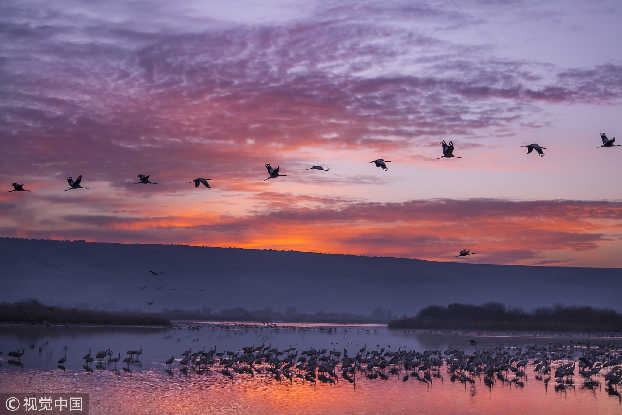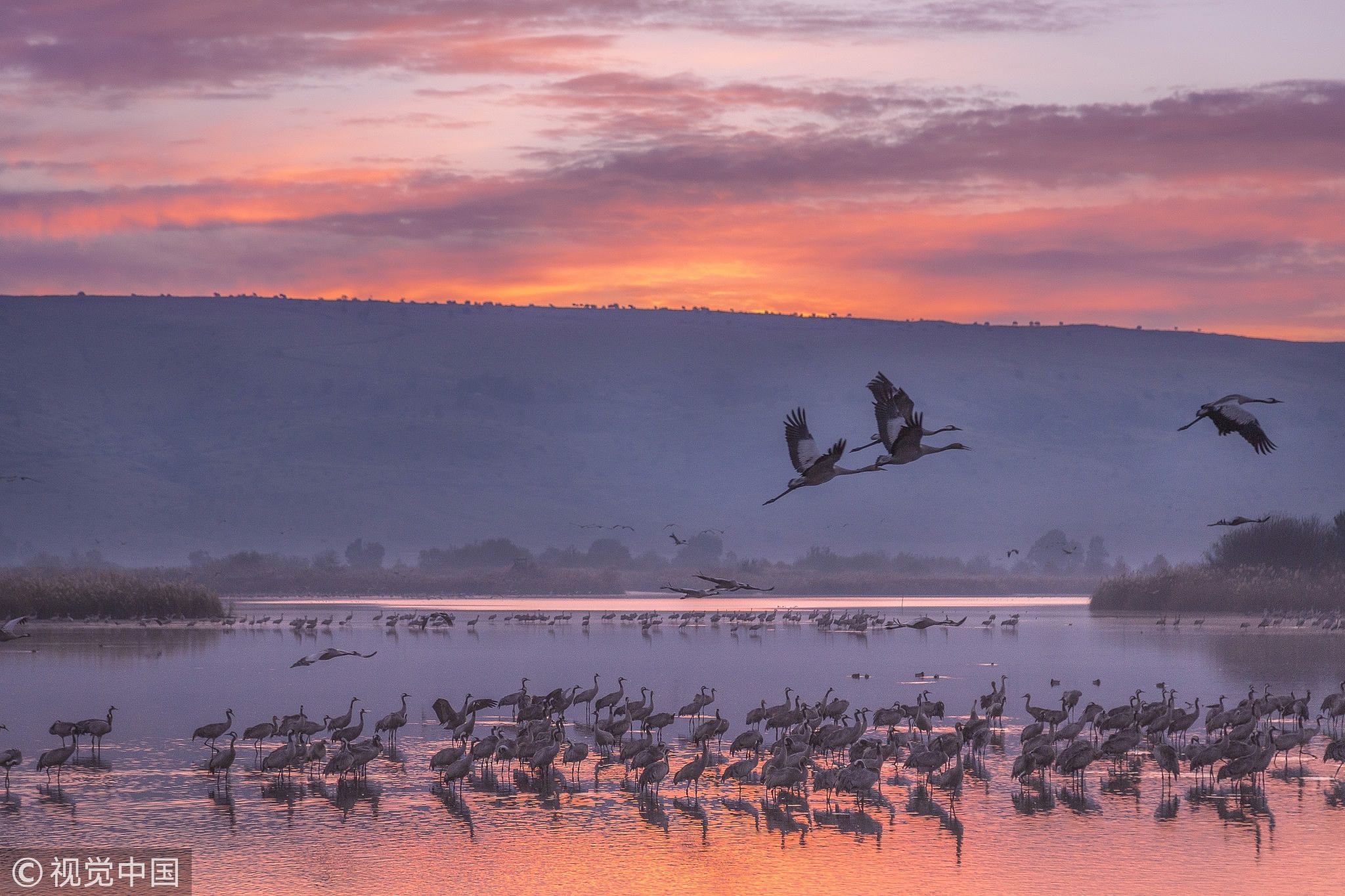 The Hula Valley is one of the prime bird-watching spots in Israel. Photographer Farid Kazamil captured the stunning scene while visiting Hula Lake and said that he was very excited by the spectacle of seeing the tens of thousands cranes all in one place. /VCG Photo