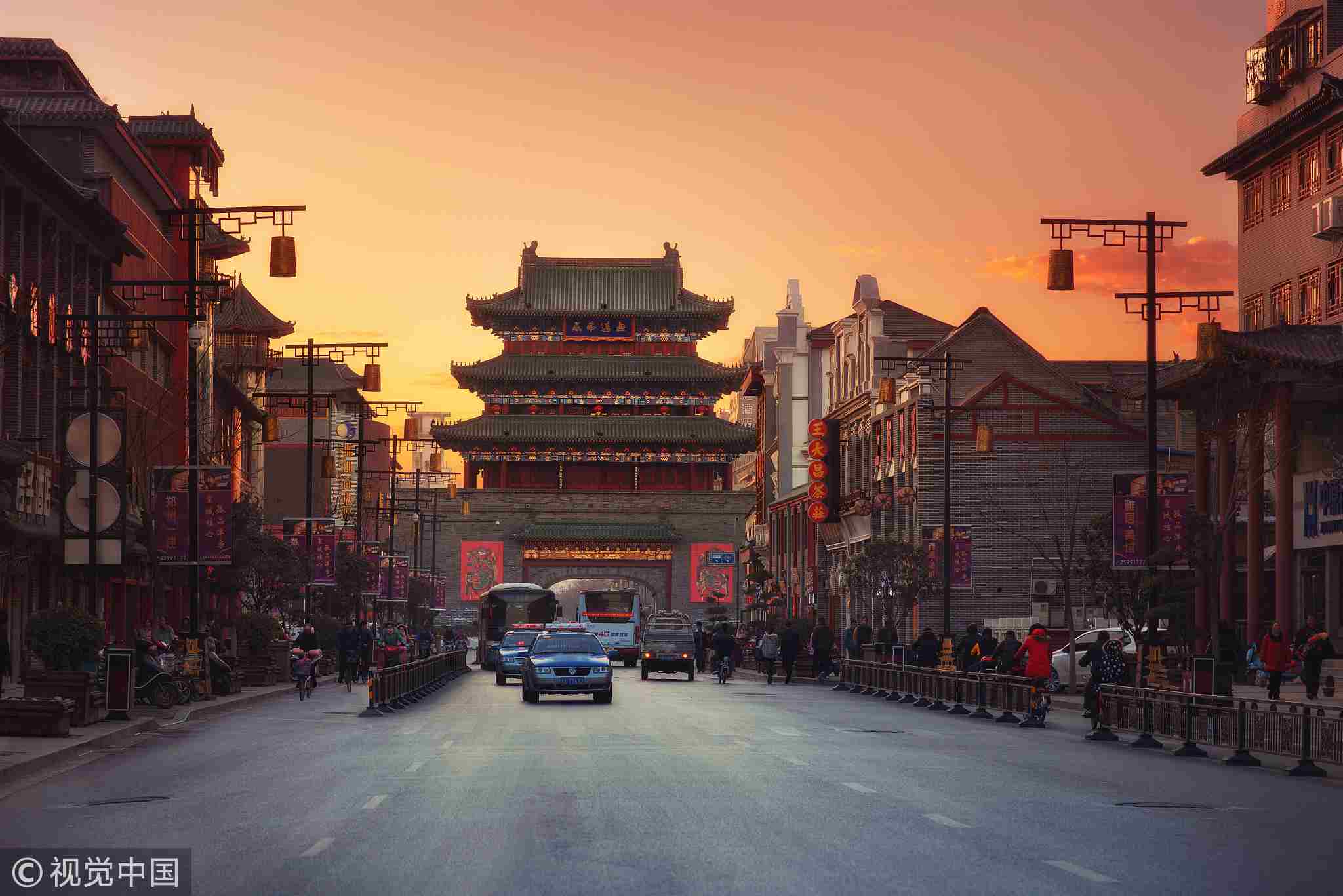 The Bell tower at dusk with passing traffic in KaiFeng. /VCG Photo