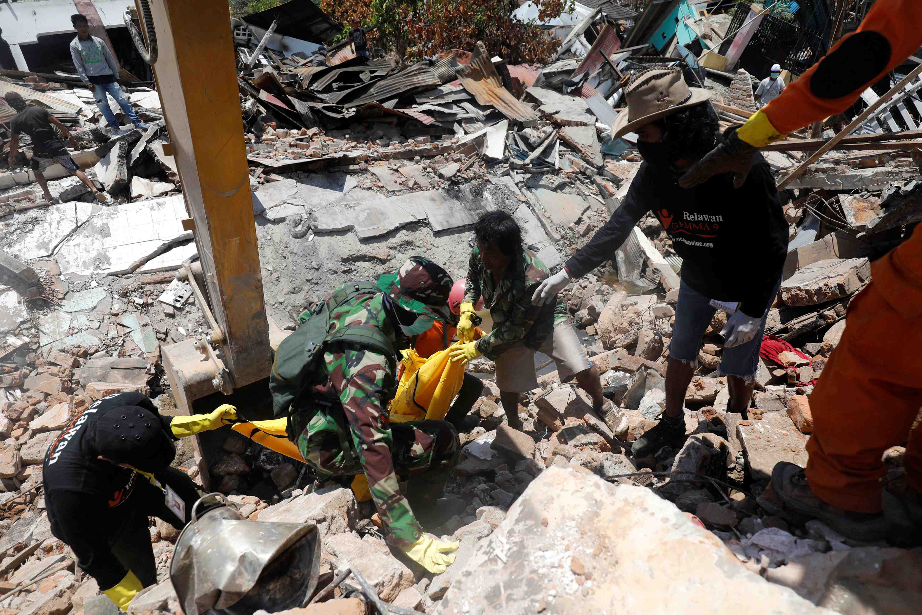 A victim of last week's earthquake is recovered in the Balaroa neighborhood in Palu, Central Sulawesi, Indonesia, October 6, 2018./ Reuters Photo