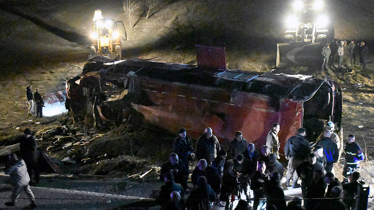 At least 13 people were killed and more than 30 others injured when a passenger bus overturned on a highway in North Macedonia on Wednesday. The bus was carrying about 50 people when it veered off the highway and plunged 10 meters into a small ravine, landing upside down. The cause of the crash, about 25 kilometers west of Skopje, is still under investigation.