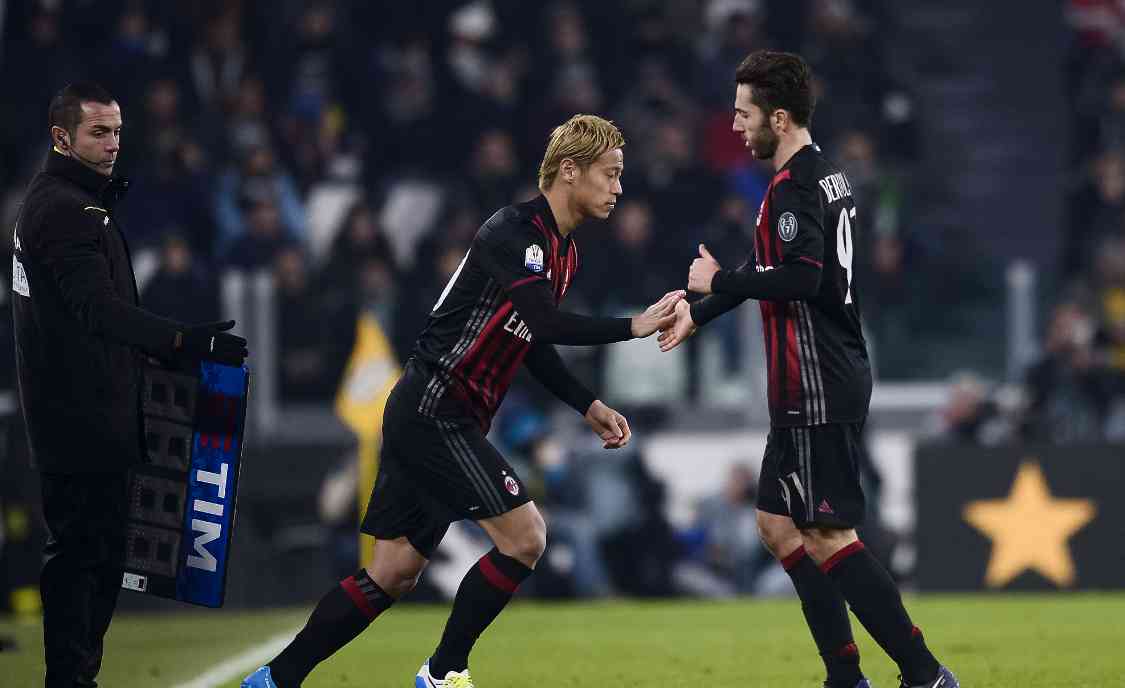 Keisuke Honda (second from left) runs on the pitch as substitute during the TIM Cup football match between Juventus and AC Milan. /VCG Photo