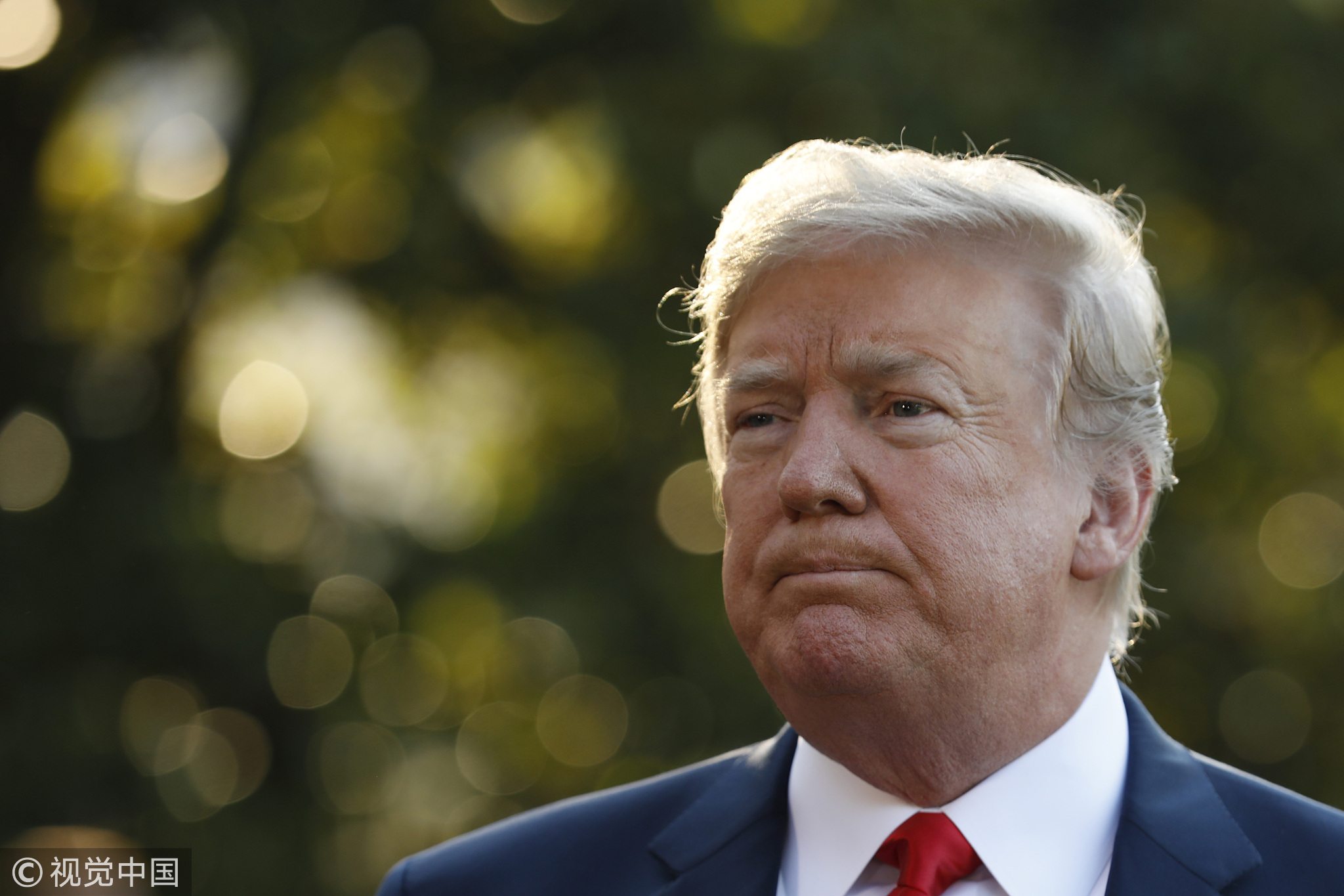 July 10, 2018: US President Donald Trump pauses while speaking to members of the media before boarding Marine One on the South Lawn of the White House in Washington, DC, US, on Tuesday./ VCG Photo