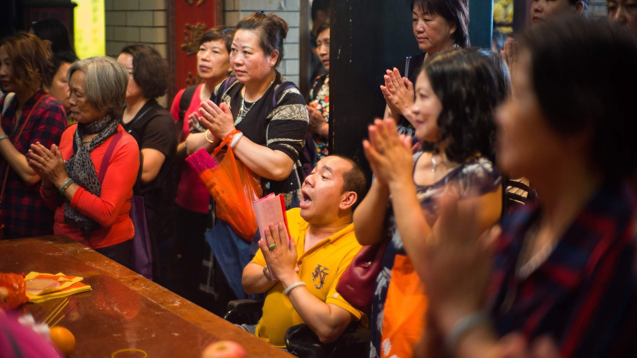 Thousands of worshipers in Hong Kong flocked to temples and took to the street to celebrate the birthday of Tin Hau, the Goddess of the Sea on Tuesday. /Chinanews Photo