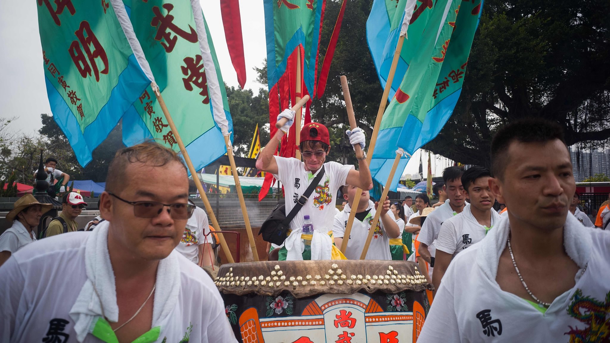One of the highlights of the Tin Hau festivities is the three-hour parade in Yuen Long district, where over 30 performing troupes from local villages marched down streets, joined by curious visitors on looking. /VCG Photo