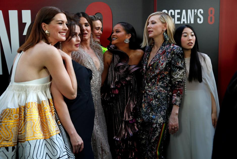 The “Ocean’s 8” cast of Sandra Bullock, Cate Blanchett, Rihanna, Anne Hathaway, Mindy Kaling, Helena Bonham Carter, Sarah Paulson and rising star Awkwafina have four Oscars, two Emmys, nine Grammys and five Golden Globes between them.