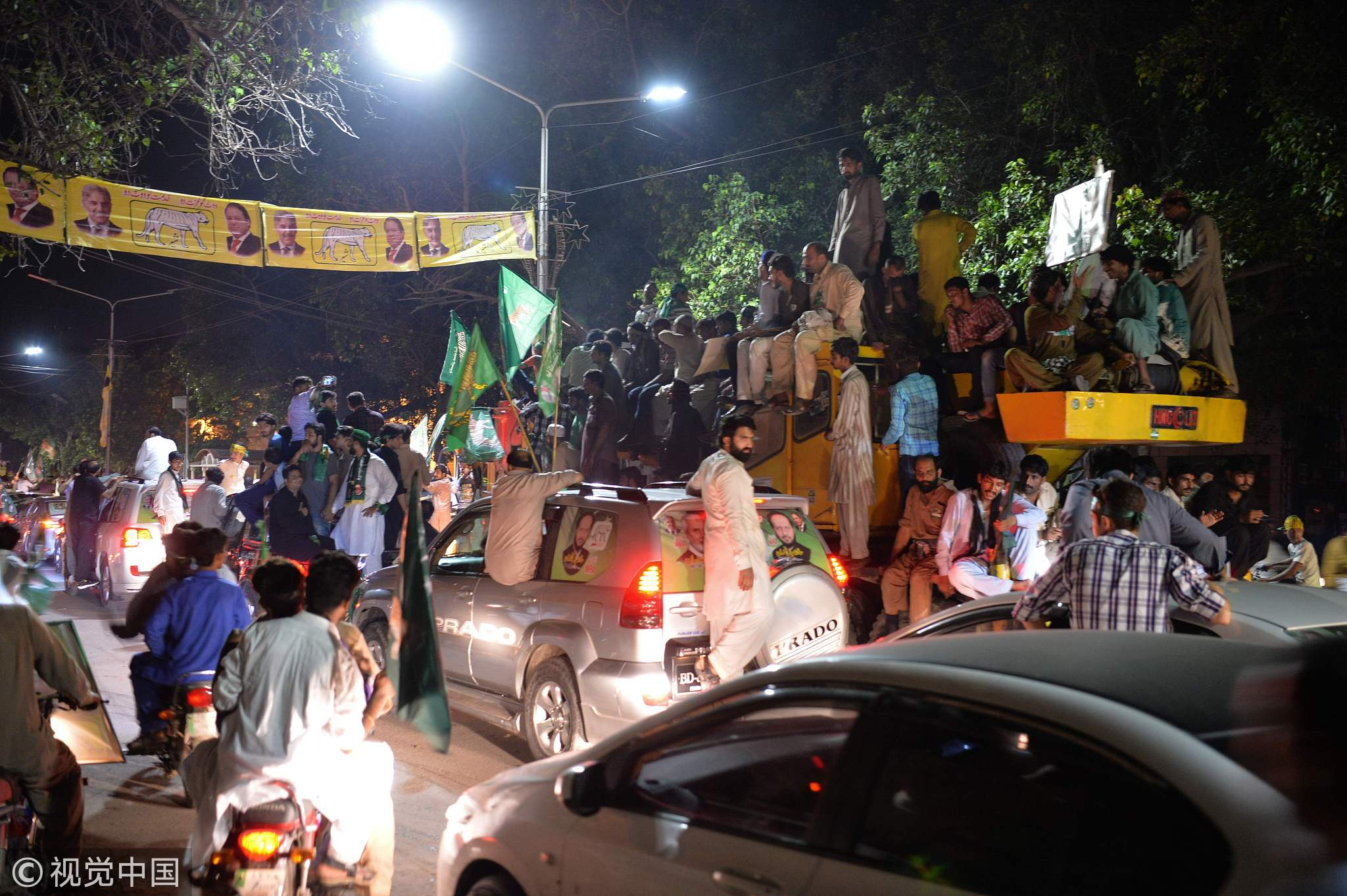 Supporters of former Pakistani Prime Minister Nawaz Sharif drive towards the airport ahead of the arrival of Nawaz from London, in a rally led by Shahbaz Sharif, Nawaz's younger brother and the head of Pakistan Muslim League-Nawaz (PML-L) party, in Lahore on July 13, 2018. /VCG Photo